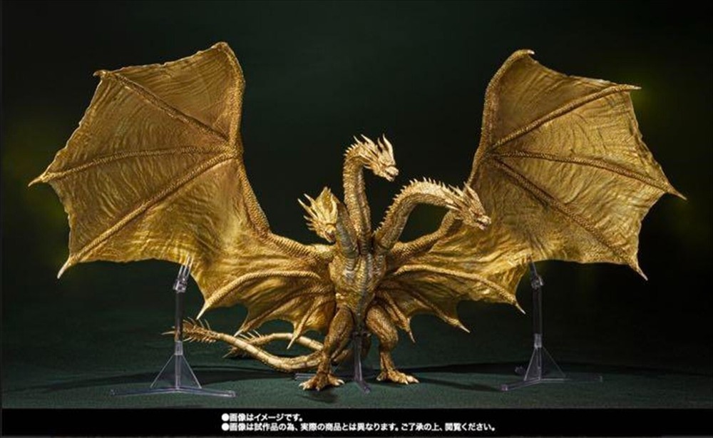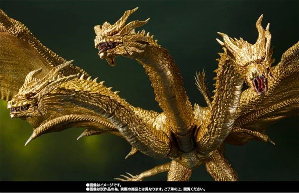 Unleash the power of the King of Monsters with the Bandai King Ghidorah Special Color Ver. This meticulously crafted figure captures the essence of Godzilla's formidable presence, making it a must-have for collectors and fans alike. With its striking design and attention to detail, it stands out in any display. While one neck and jaw may need occasional adjustments, poseability remains flawless, and all accessories are included. A rare, high-quality piece worth the investment for true enthusiasts.