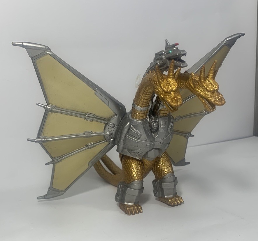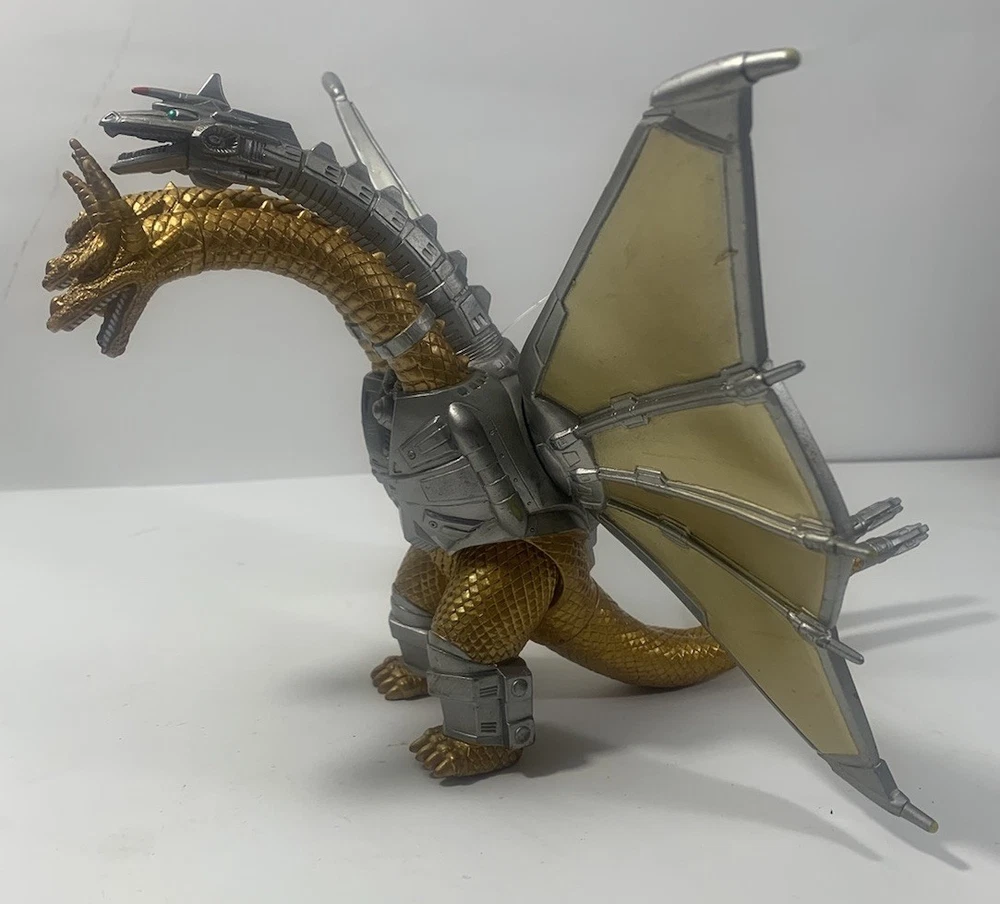 This Bandai Mecha King Ghidorah toy is a must-have for any Godzilla fan. The 6-inch kaiju is in great shape and ready to join your collection. With its detailed design and vibrant colors, it's the perfect addition to any monster toy lineup. The toy features the iconic Mecha King Ghidorah design, which was first introduced in the 1991 Godzilla movie. The toy also comes with a variety of weapons and accessories, including the classic chainsaw hands and a fire breath weapon. Overall, this Bandai Mecha King Ghidorah toy is a fantastic find for any collector or enthusiast.
