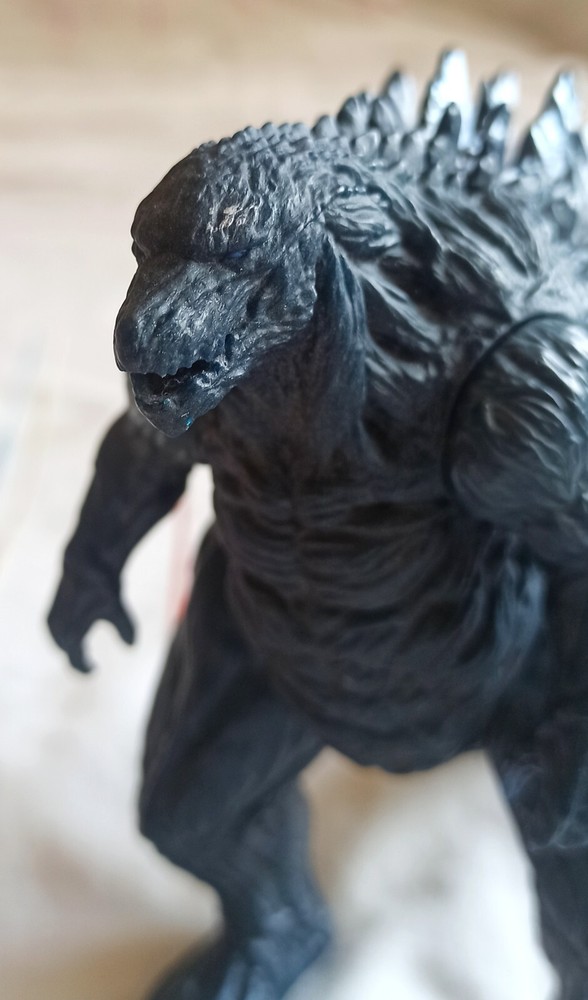 Bandai Monster King Series Godzilla 2017 Measures approximately 6" tall Neca Godzilla King of the Monsters 2019 Measures approximately 6" tall Has a missing part on the tail. Good pre-owned condition (both have some surface marks. Please see photos)
