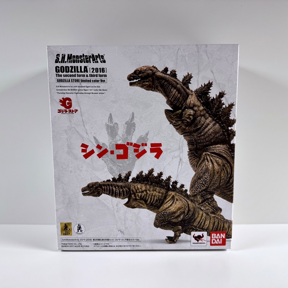 Bandai MonsterArts Shin Godzilla Store 2016 Second Third Forms Limited Color Ver. Mint *OPEN BOX* NEW. Box has been opened for inspection only. Trays did not come from factory with seals on them but have never been separated. The figures are brand new & have never been removed or displayed. Graphics box may have light wear. Please see photos as they are part of the description. All reasonable offers will be considered. I have a lot of other Godzilla items & offer combined shipping. If you have any questions please send me a message. Thank you for looking!