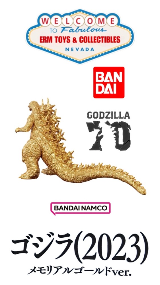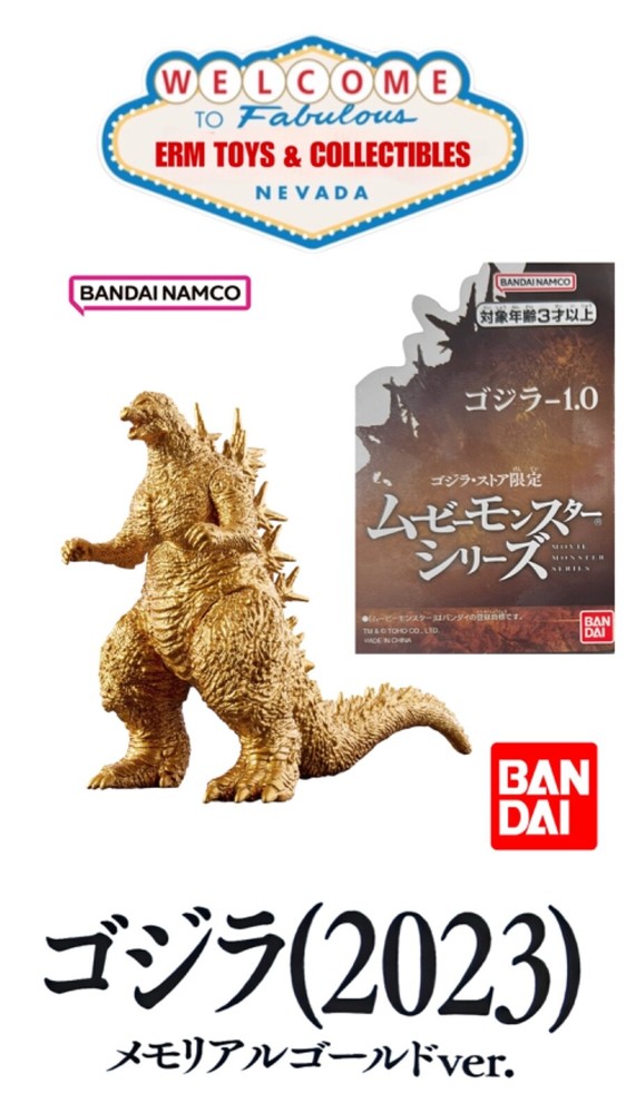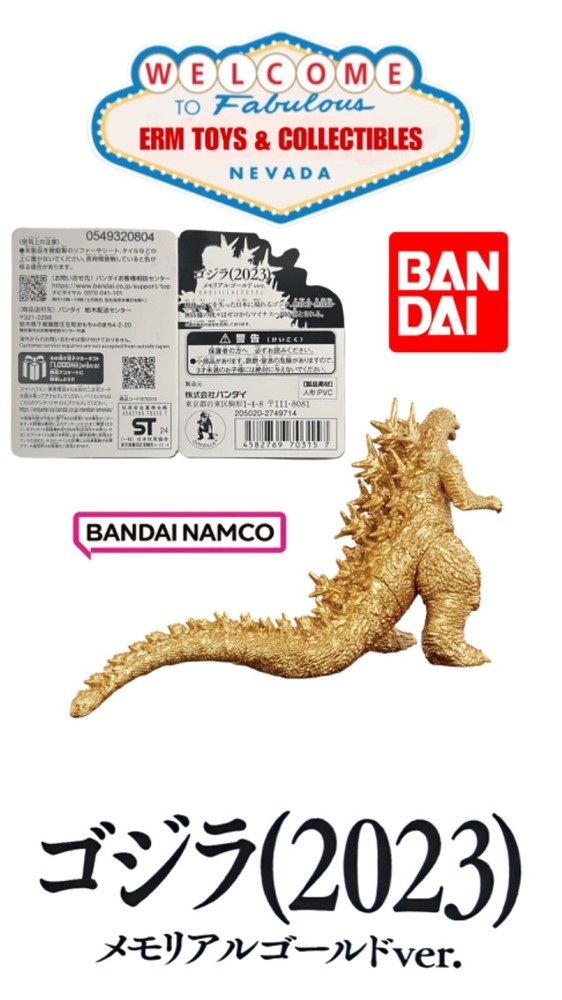 Bandai Movie Monster Series: Godzilla Minus One (2023) - Godzilla Memorial Gold Version The Godzilla Movie Monster Series (2023) gets the gilded treatment in this gold-painted Godzilla Store Limited Movie Monster Series Godzilla (2023) Memorial Gold Version figure. Standing approximately 155 mm (6.1") tall, this PVC figure celebrates 70 years of the King of the Monsters in cinema. Product Features Approx. 6.1 inches tall (155 mm) Material: PVC Gold-painted Memorial Gold version Based on Godzilla Minus One (2023) Part of the Movie Monster Series Image is for illustrative purposes only. Please note that the color may differ slightly from the actual product. Please Note The item is displayed in its original packaging but does not include a box. It is enclosed in plastic packaging. While there may be slight discoloration or minor imperfections, the item is overall in great condition. Legal Disclaimer Every item undergoes thorough inspection and verification before being shipped. While we strive to meticulously select high-quality merchandise, it's possible that you may receive a package with minor flaws. These imperfections may include shelf-wear, creases, or slight variations. Additionally, there may be minor issues with paint or flocking. Please note that we are unable to facilitate exchanges solely due to such imperfections. We appreciate your understanding.