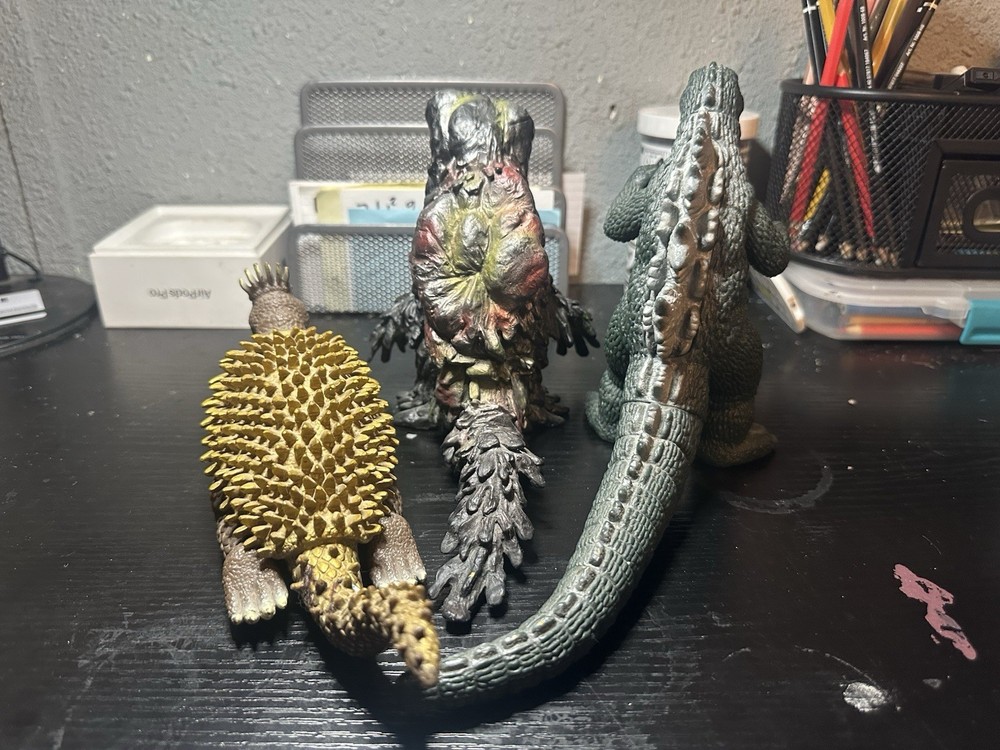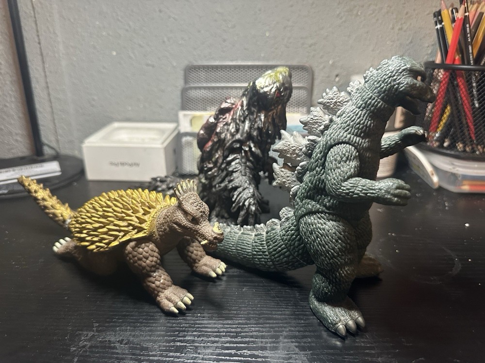 The Bandai Movie Monster Series MMS Anguirus and Hedorah are collectible items featuring Godzilla from the 1975 film. making it a versatile addition to any collector's display. With detailed craftsmanship and nostalgic appeal No tags come together as is