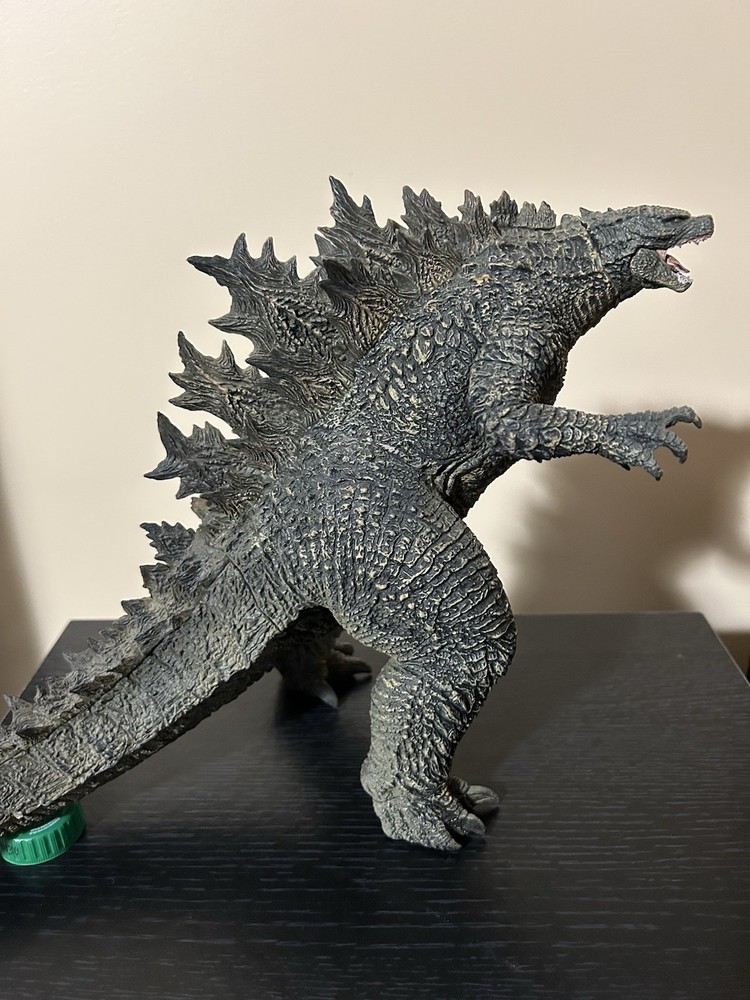 This Godzilla figure is a must-have for any kaiju fan! The details are incredible, and the size makes it a perfect display piece. I love how the bottle cap mod gives it a fiercer look—such a creative touch. Even though it's been stored, the condition is still great. Highly recommend for collectors!