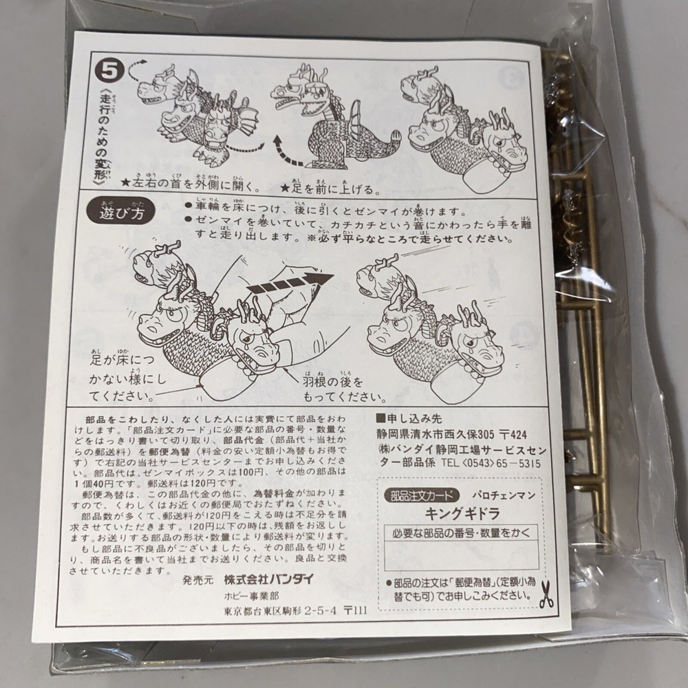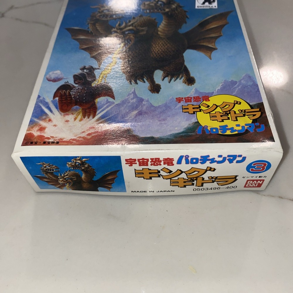This Bandai Parachenman King Ghidorah model is a must-have for any monster toy collector. With its impressive design and attention to detail, it is sure to satisfy fans of the Godzilla franchise. The model is brand new and has never been opened, making it a great addition to any collection. The box is in excellent condition and the model itself is even more impressive. It features King Ghidorah in all his glory, with intricate details that make this toy stand out from the rest. This is a great opportunity to add a rare and valuable piece to your collection, so don't miss out on the chance to own this Bandai Parachenman King Ghidorah model. Open box. Factory sealed parts.