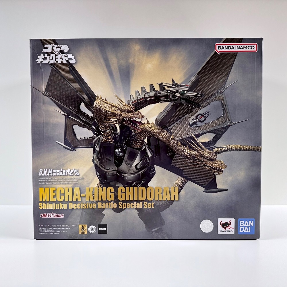 Bandai SH MonsterArts Mecha King Ghidorah Shinjuku Decisive Battle Mint *OPEN BOX* NEW. Box has been opened for inspection only. Trays did not come from factory with seals on them but have never been separated. The figure is brand new & has never been removed or displayed. Original mailer box included. Graphics box has very slight fold. Please see photos as they are part of the description. All reasonable offers will be considered. I have a lot of other Godzilla items & offer combined shipping. If you have any questions please send me a message. Thank you for looking!