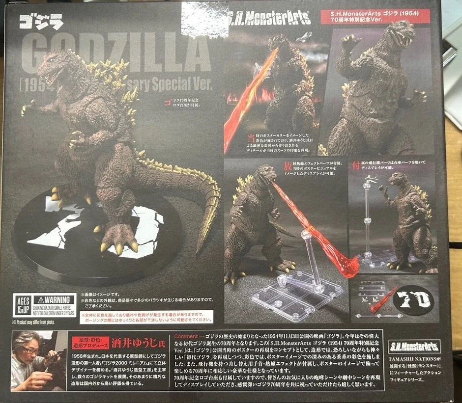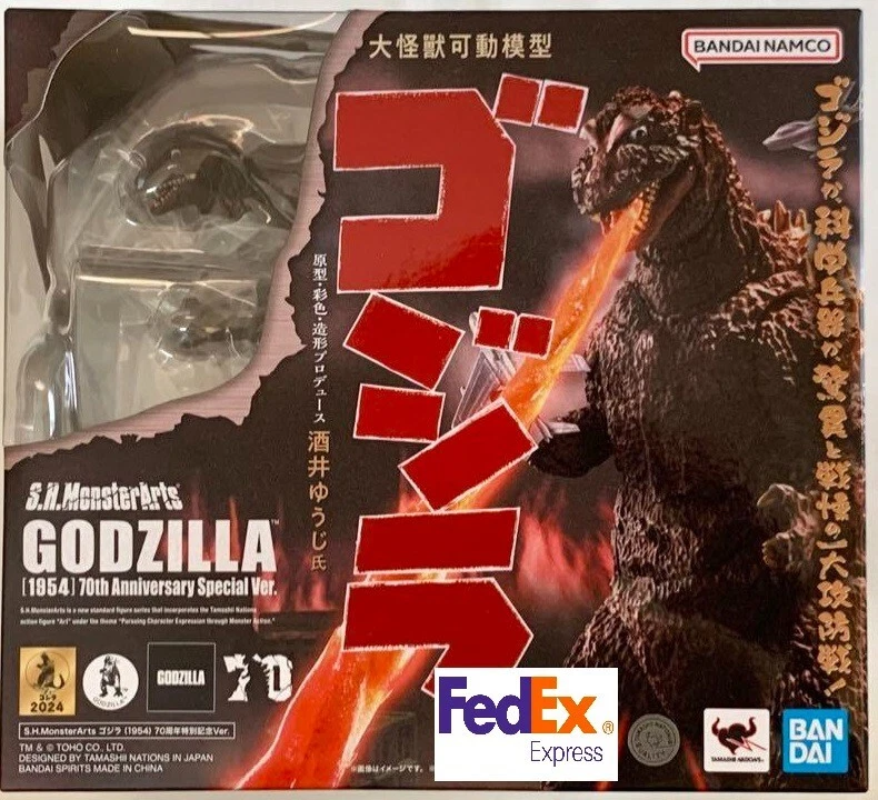 We will send it by FedEx. To commemorate the 70th anniversary of Godzilla, Godzilla (1954) is now available in S.H.MonsterArts, painted in the poster color image! It is fully 3D produced by Yuji Sakai, a leading Godzilla sculptor. The coloring is based on the movie posters of the time, and the details created by the precise modeling recreate the impression of the suit at that time. By using the left and right interchangeable wrist parts, it is possible to hold the included airplane. In addition, a radiation heat ray effect is included, so you can enjoy displaying it in the poster image. In addition, a "Godzilla 70th Anniversary Logo Pedestal" is included to commemorate the 70th anniversary of Godzilla. ■Product Specifications Total height: Approximately 150mm Material: PVC, ABS ■Set contents ・Main body ・Interchangeable wrist parts left and right ・Radiation heat ray effect parts ・2 airplane parts ・Pedestal set Standard shipping is recommended! (Economy-delivery takes a considerable amount of time, shipping to the United States does not have a tracking number, rare delivery accidents occur) Currently, there is no shipping method for the United States that can issue an accurate tracking number for economy shipping. It will be shipped by Japan Post small packet E-packet shipping areas with valid tracking numbers will be sent by E-packet (Europe, Asia) Delivery time is usually around 2 weeks, more may be needed depending on the area (3-4 weeks) Please wait enough time Standard shipping is by FedEx or Japan Post EMS (with tracking number). Choose standard delivery if you need safe and fast delivery Shipping will be cheaper with multiple purchases Please ask in advance or add to the cart before requesting an invoice Important information • We offer a 60-day return policy! Payment Method • PayPal uses only buyer protection policies. Shipping policy • Goods usually ship within 5 business days. • Orders will not be shipped on weekends or holidays. • Buyer is responsible for the accuracy of the shipping address. • The tracking number will be emailed to you after your order has been shipped. Overseas buyers-please be careful: -Import duties, taxes and fees are not included in the item price or shipping fee. These charges are the buyer's responsibility. ・ Before bidding / purchasing, please check with the customs office in your country to confirm the additional charge. • These charges are usually collected by the carrier or when you receive the item. Not to be confused with additional shipping charges. -We do not mark the value of a product below its value or mark an item as a "gift". Regulations of the United States and international governments prohibit such conduct.