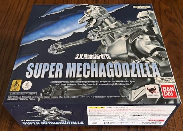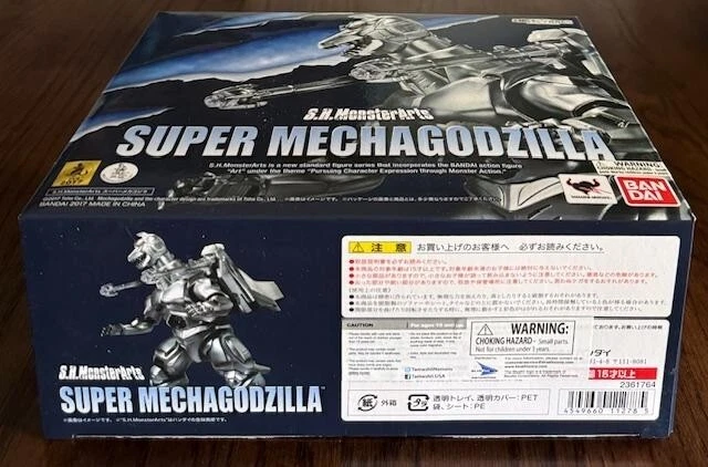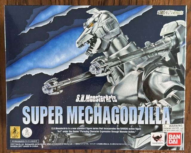 SH MONSTERARTS SUPER MECHAGODZILLA Figure was displayed on a shelf then returned to origional packaging. All accessories and stand are included. Figure has no obvious paint defects. Both boxes are included and are in great shape with only light edge wear. Figure was dusted before packed. Figure and box come from a smoke free home.
