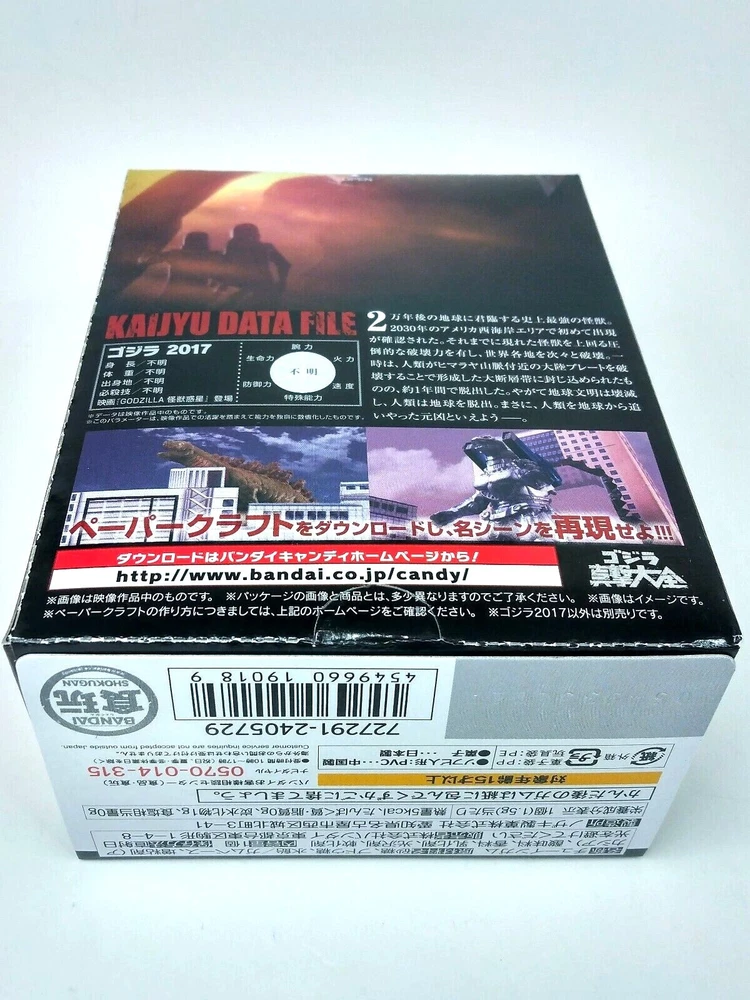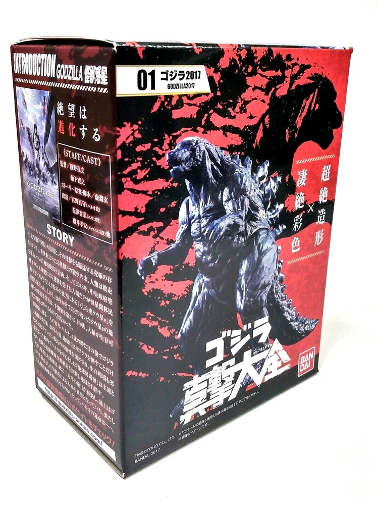 Bandai Shokugan Godzilla 2017 Figure - US Stock NEW Condition: Item is brand new, in sealed package. Box is in good condition with some small signs of wear. Please look over all pictures to help you make a decision if this is a good item for you. Please keep in mind this is a collectible imported from Japan and the box is almost entirely in Japanese. This figure is intended for adult collectors. Fast shipping via USPS. Item will be shipped in a box and packaged with bubble-wrap to protect your item.