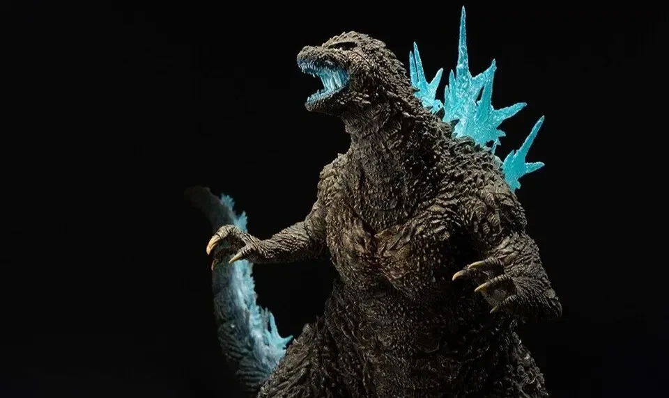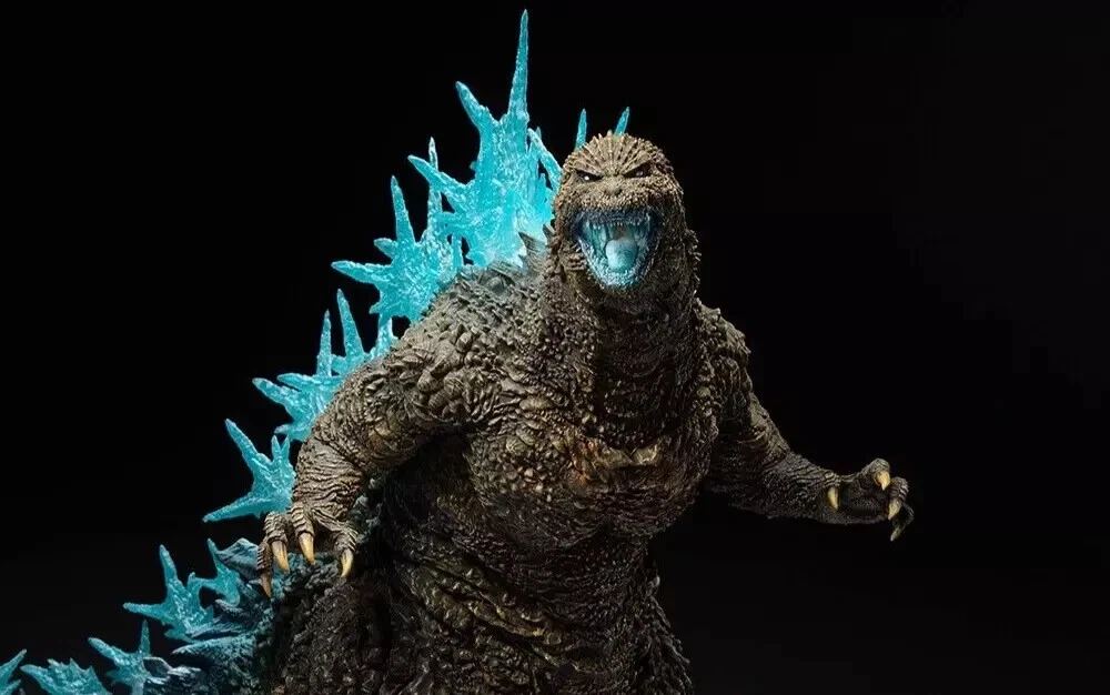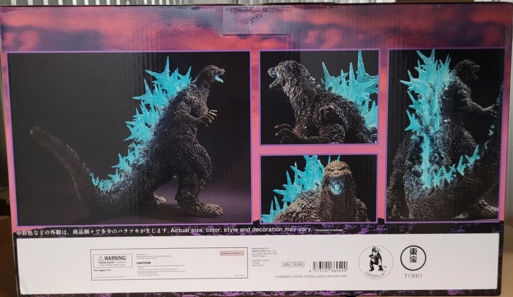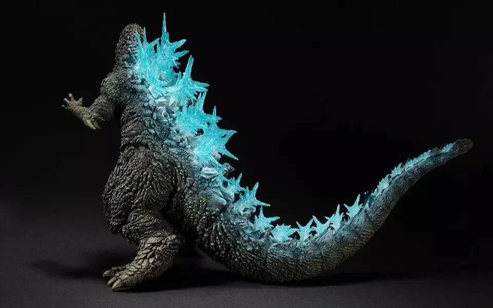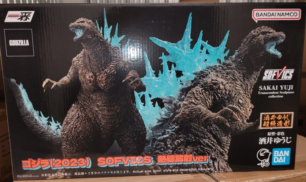 Here is a Bandai Sofvics vinyl statue of everybody's favorite Big G as he was about to power up in the melodramatic war story rife with "serious human drama" Godzilla Minus One. Sculpted by Yuji Sakai, this craggly vinyl figure measures 9" tall and 13" long and comes new in the original box as pictured.