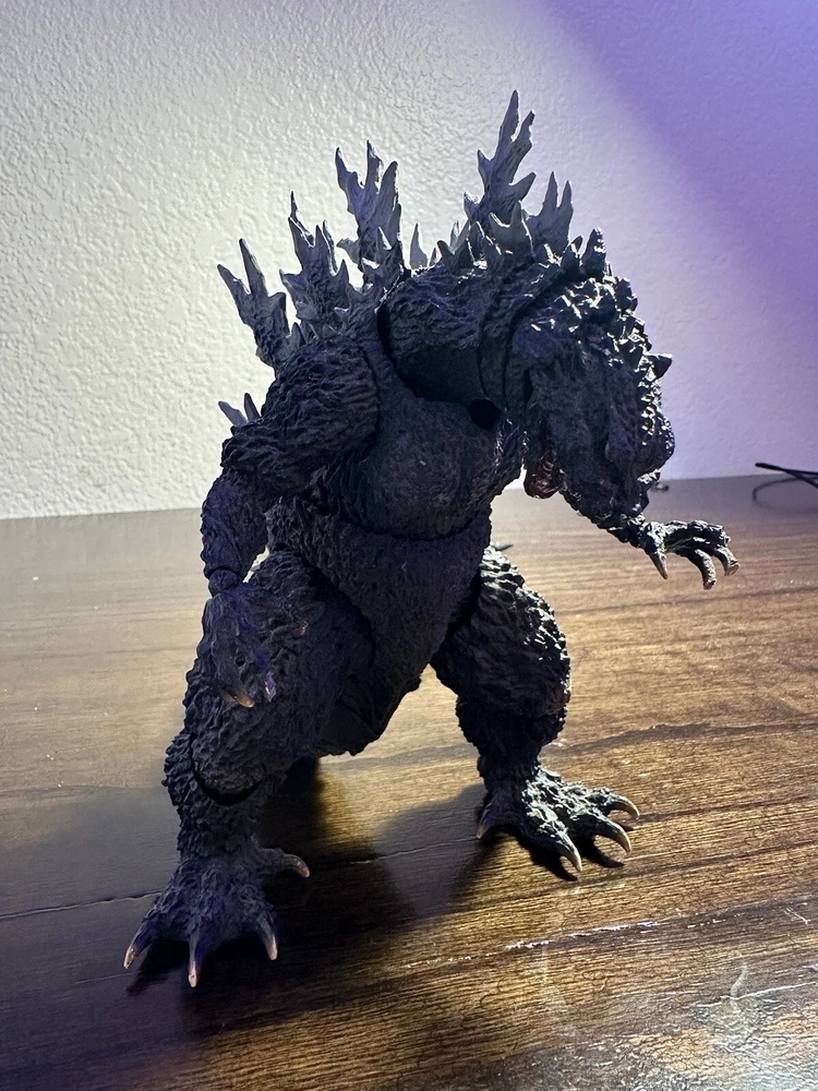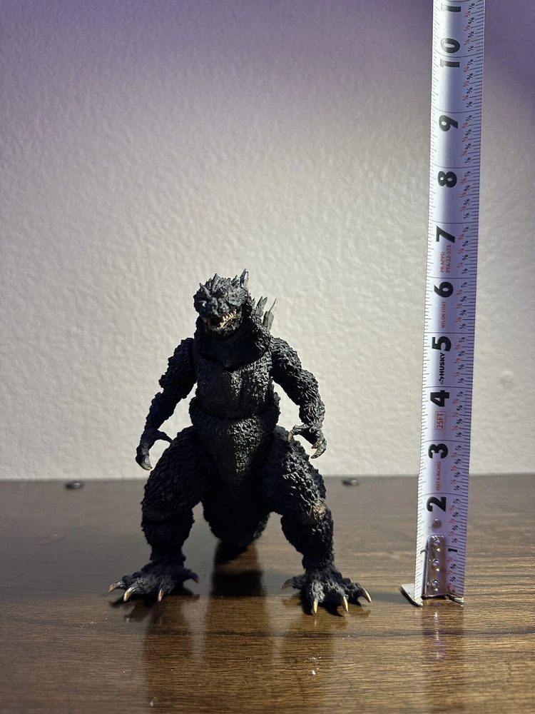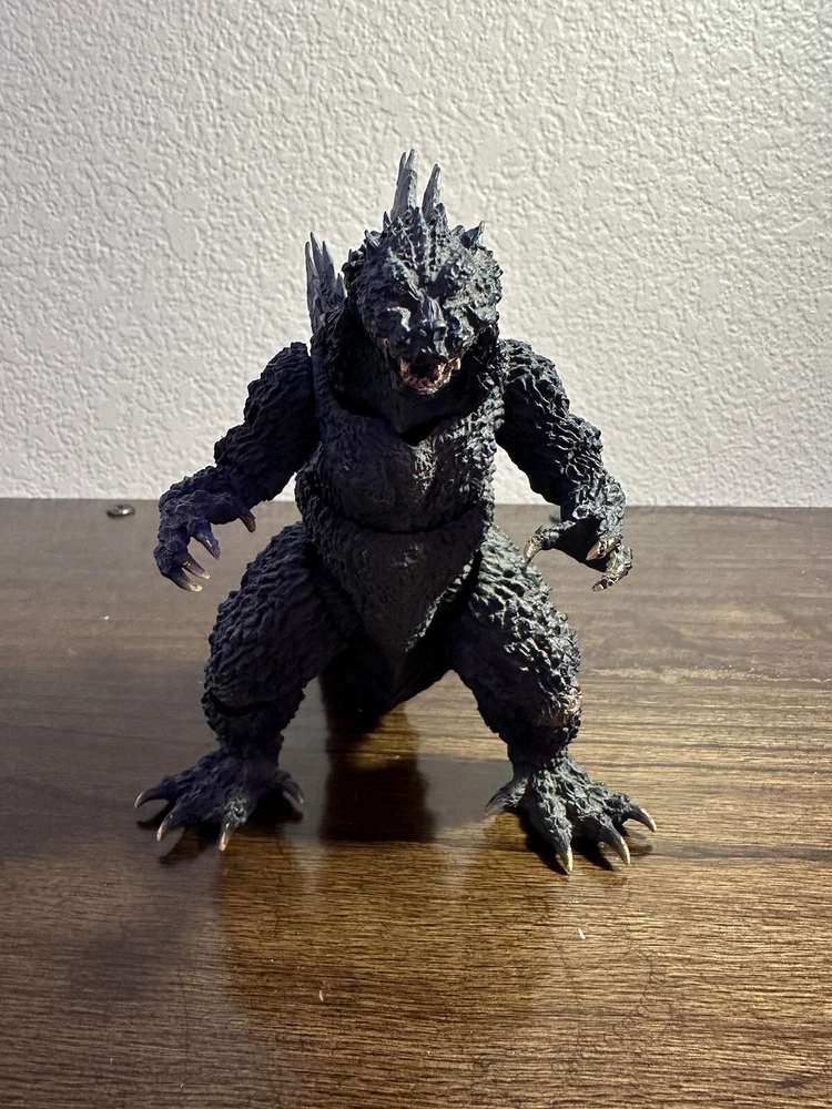 Godzilla sh monsterarts 2000, 6 in (gray version). This figure is in very good condition, mildly used. Smooth joints. (No accessories) and mild paint chipping on the nails.