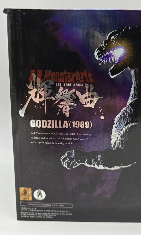 Please see pictures for details and condition Experience the iconic monster in stunning detail with the Bandai Tamashii Nations S.H. Monsterarts Kou Kyou Kyouku Godzilla Action Figure. Meticulously crafted to capture the essence of the classic 1989 film. location 1D