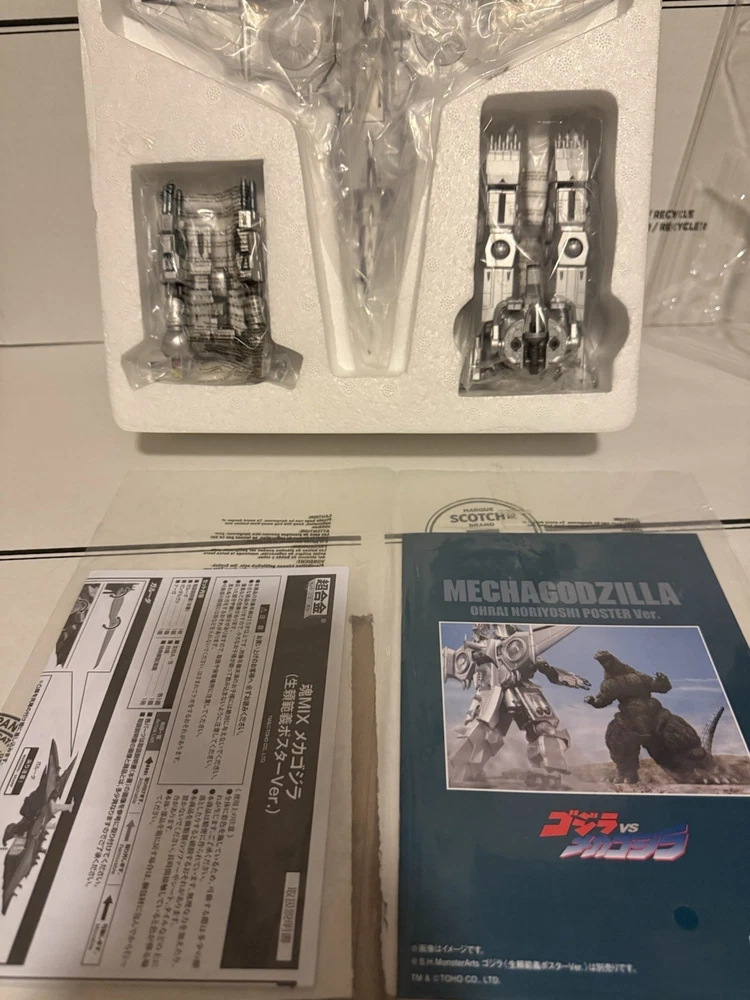Capture the essence of classic monster with the Bandai Tamashii Nations: MonsterArts MechaGodzilla Ohrai Noriyoshi Poster Version. This collectible is a tribute to the iconic Godzilla theme, crafted with the attention to detail that Bandai is renowned for. The year 2017 marks its release, bringing a piece of the revitalized interest in the legendary creature to your collection. Like new, never transformed.