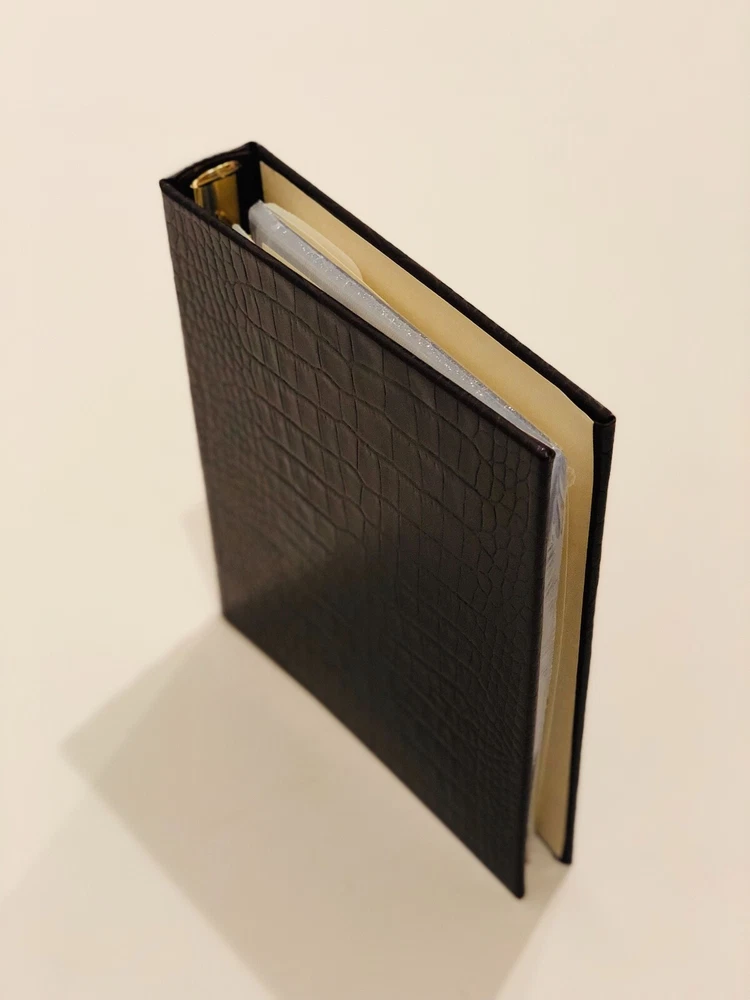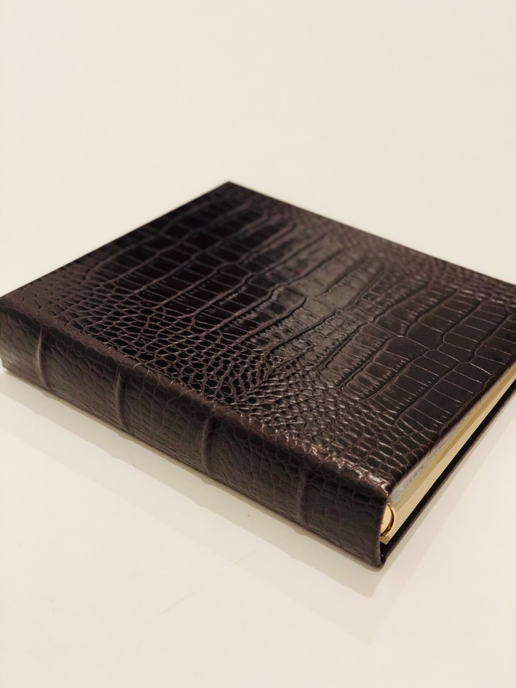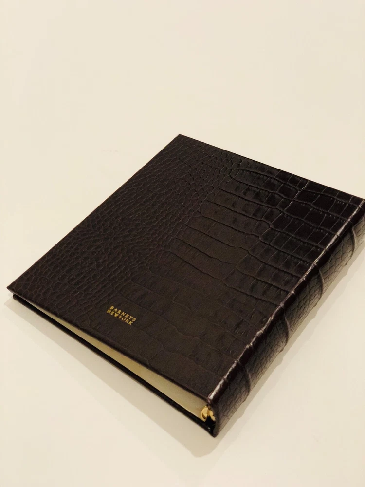 Measures 9 x 7.5 inches The exclusive Barneys New York home collection features the finest décor and entertaining essentials, including luxurious throws, sleek barware, elegant tableware, and sophisticated desk accessories. Barneys New York's medium photo album is bound in the U.S. of brown croc-embossed leather. The enclosed album pages offer archival protection for prints up to 4 x 6 inches. The super clear pockets are produced in a heavyweight polypropylene unique to this albums series. 18 pages - holds 72 photographs.