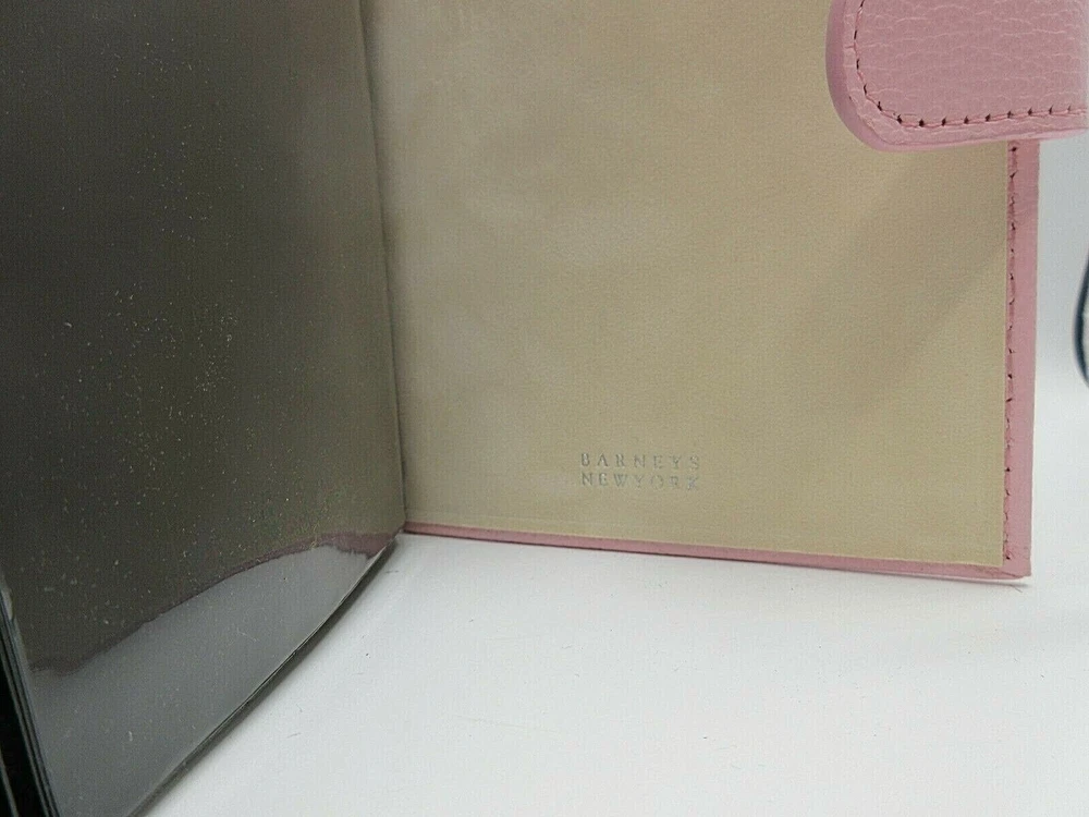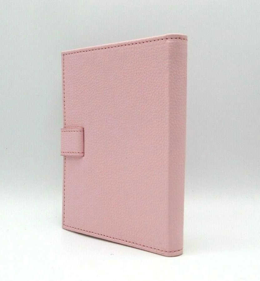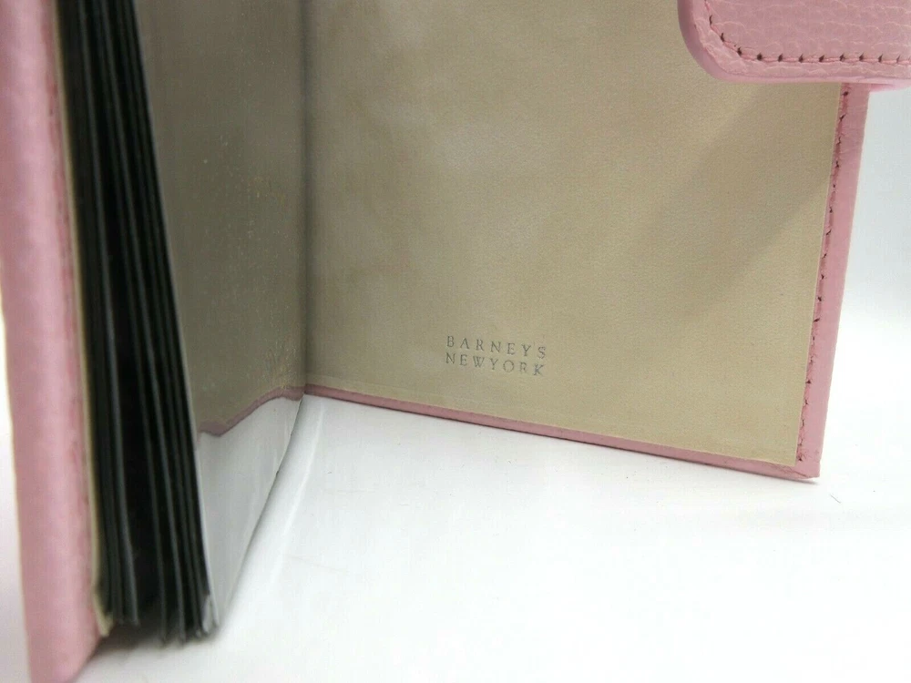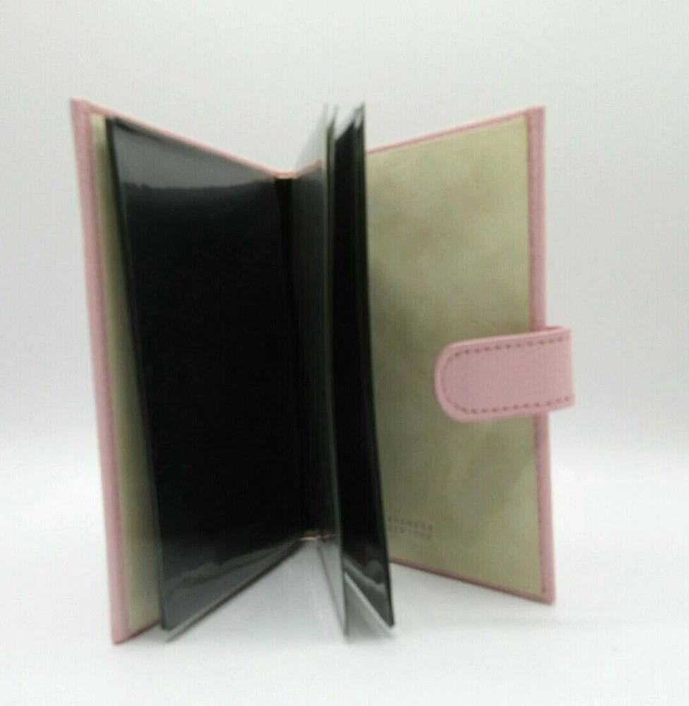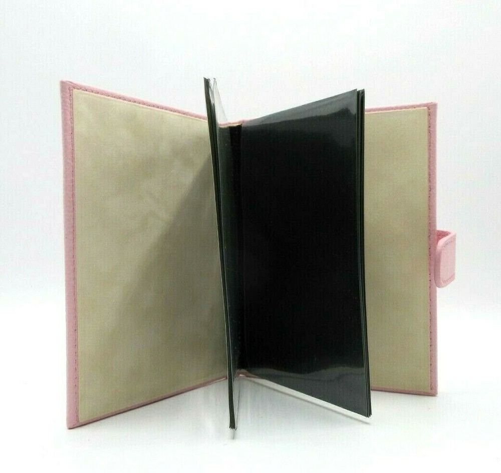 New P astel Pink "Brag Book" in pebbled leather with snap closure Holds 20 4x6" prints A fun and fashionable booklet designed to carry your favorite photos. Small enough to tell a story or make a statement with pride Features archival polypropylene pages and a protective snap closure. An ideal gift Size 5" x 6-1/2" 10 crystal-clear leaves hold 20 4" x 6" photos Beautiful topstitching Secure snap closure New Old Inventory