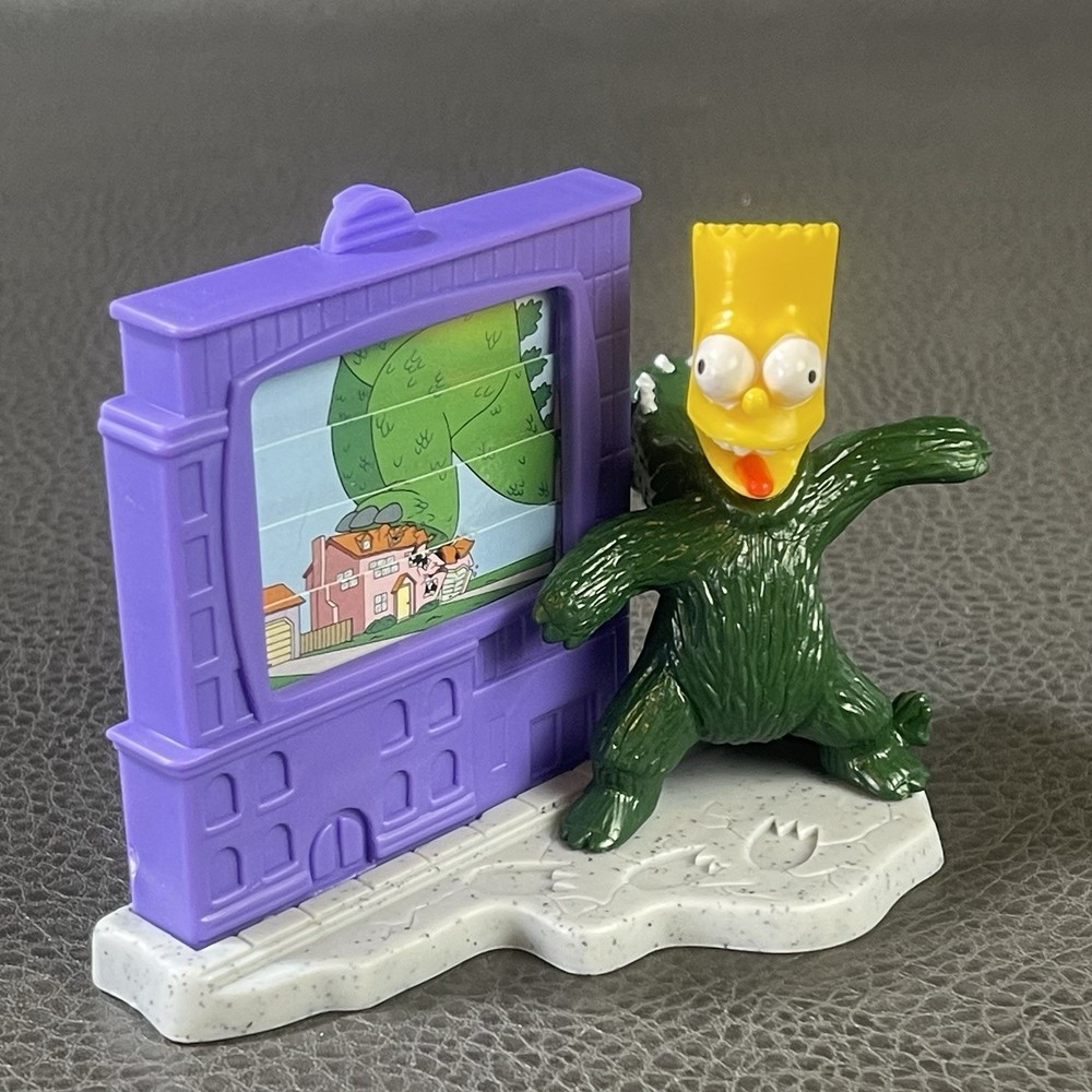 Bart Simpson Figure Godzilla Costume Burger King 2002 Bartzilla Flip Screen Light storage wear...