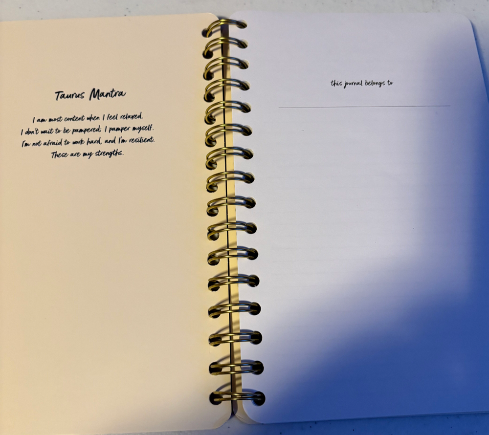 This spiral bound journal features a hard cover and college ruled pages, making it perfect for jotting down notes, ideas, or even just daily reflections. The cover is made of sturdy cardboard, and the design features the zodiac symbol for Taurus. With lined and ruled pages, this journal can be used for a variety of purposes, whether for personal or professional use. It's a versatile tool for anyone looking to organize their thoughts and ideas, and the sturdy construction ensures that it will hold up over time. Add this journal to your collection of office supplies or use it as a standalone tool for boosting productivity. Be Rooted Zodiac TAURUS Spiral Bound College Ruled Hard Cover Journal · HARDCOVER SPIRAL JOURNAL: Harness cosmic energy with this 5.5" x 8.5" journal. Its Zodiac hardcover, gentle as stardust, is designed for durability. With lined pages and rounded corners, these pages invite your daily musings and inspirations. · PREMIUM RESPONSIBLY FORESTED PAPER: Made with top-notch FSC certified paper, our journal surpasses standard notebooks. Its thick sheets prevent ink permeation, creating a flawless surface for your creative spillage. · GOLD STURDY SPIRAL WIRE BINDING: Release your creativity and stay focused with our durable golden ring design. The Zodiac Journal is both hard-wearing and simple, the ultimate tool for journaling, note-taking, and plotting.