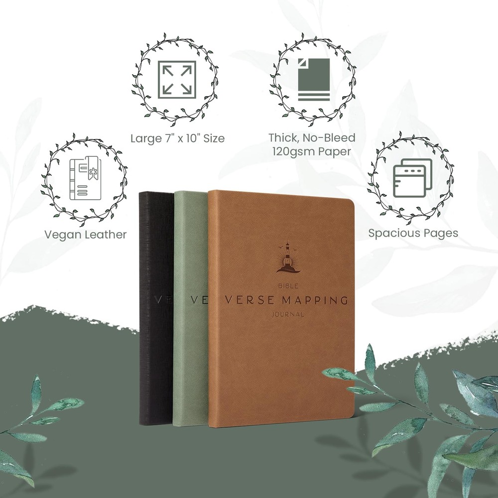 With 's Bible Verse Mapping Journal, you are able to identify keywords to define and do a deeper study to analyze that particular keyword text in the language of its original or earliest available form. This method is designed to provide you with new confidence in your Bible study skills. Whether you are a beginner at verse mapping or a seasoned scholar, this guided, structured journal provides references for research and commentary, Bible study topics, and instructions with an example verse map. This durable planner is packaged in a handsome, black gift box. Verse Mapping Journal: Experience a deeper connection to your faith with our 7x10 Linen Bible Verse Mapping Journal for men. Our journaling kit offers a durable, rugged, vegan leather cover that not only feels great but stands up to frequent use. A reliable study tool for men. Bible Study Guide: Each verse study provides a set of 4 pages with ample room for writing Bible verses, keywords, and historical context. Essential companion to your bible journaling supplies, this set offers ample space for memorializing spiritual insights.