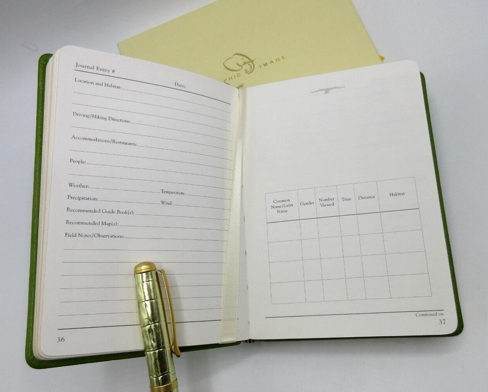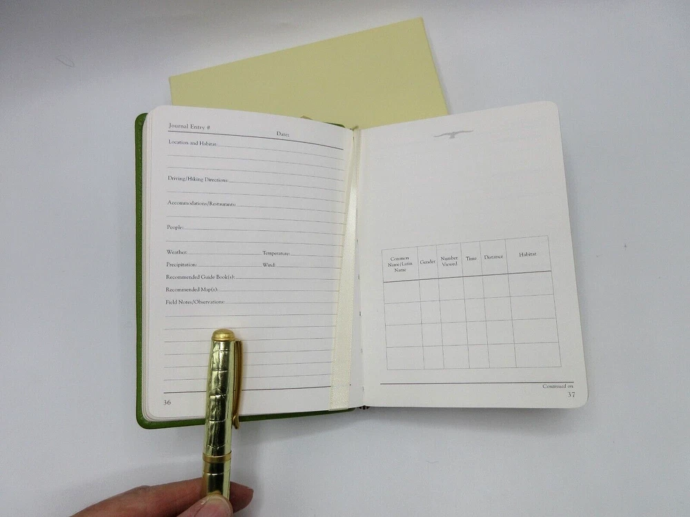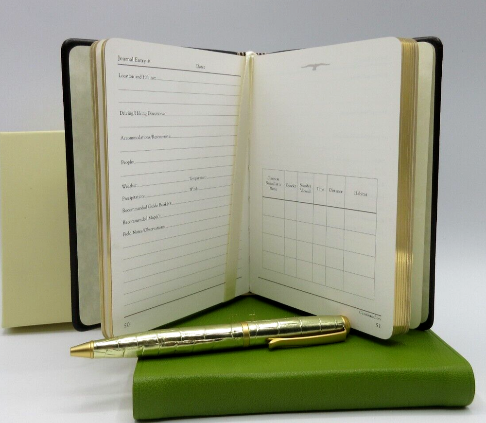 Birder's Journal Full grain leather bound cover handcrafted by Graphic Image in Melville, NY, USA. Gold embossed cover Retails in fine stores for $60. Carry this handsome, soft, flexible, lightweight journal on all your bird watching excursions. The Graphic Image birder's journal features entry pages that let you keep track of habitat, weather, and observations. Ivory paper specially selected for sketching and all your entries. Pages have a gold gilt edge. Satin ribbon page marker. The perfect gift for any bird lover. Size: 4-3/8" x 6", 160 entry and sketch pages Traditional full grain leather Smyth-sewn for strength and longevity New Ships in gift box If you’re buying multiple items from us, we are happy to ship everything to you in the same package. eBay will automatically combine the shipping costs. Simply add your items to your shopping cart, and eBay will adjust the shipping cost at checkout.
