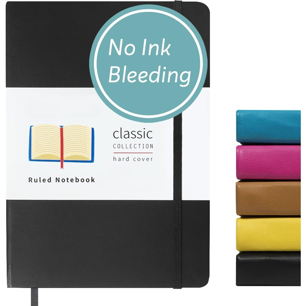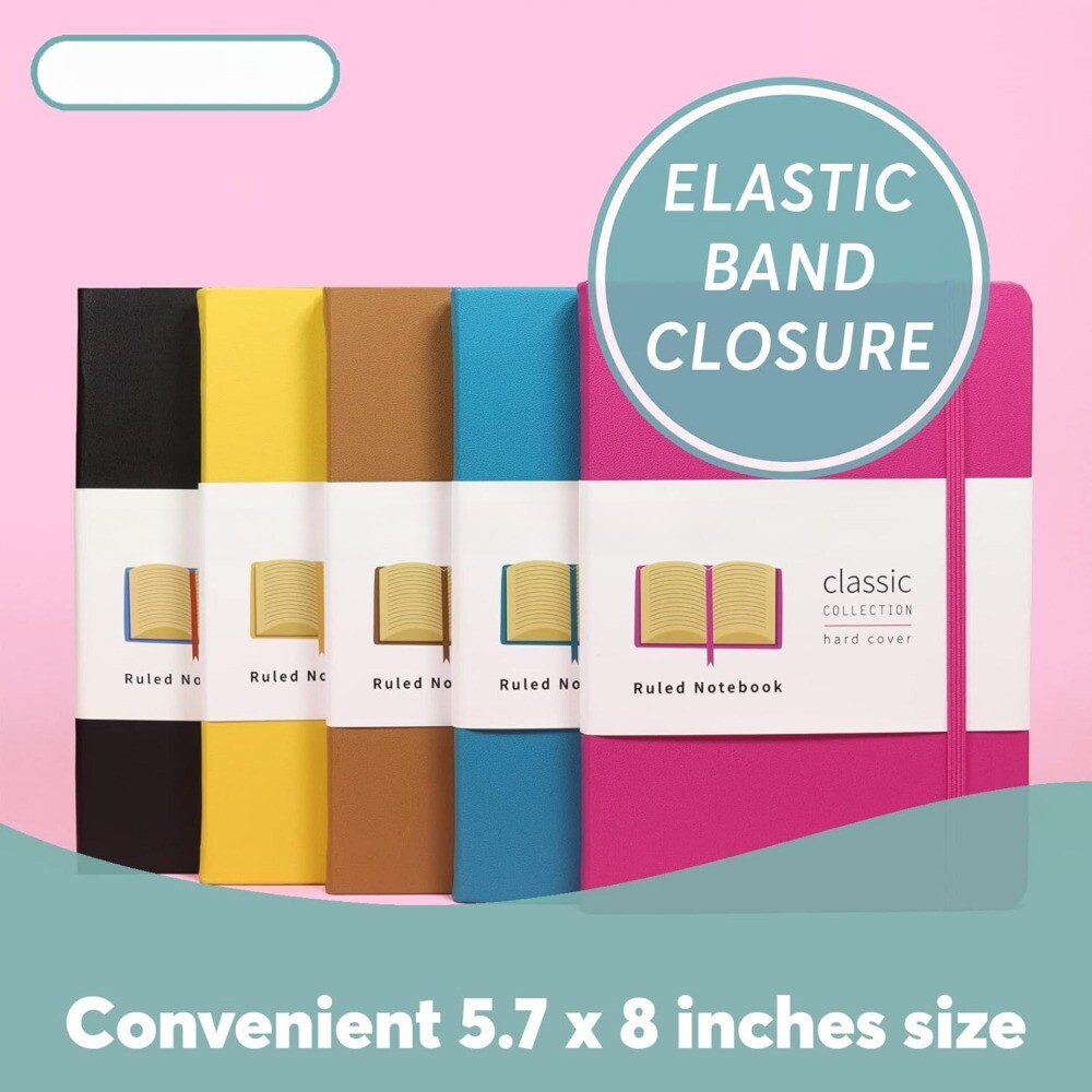 NON INK BLEEDING QUALITY PAPER. Stylish and durable, our leather hardcover lined journal notebook offers the perfect space for collecting your most intimate thoughts, simply record your diary in this exquisite hard back notebook journal LAY FLAT THREAD-BOUND PAGES of thick paper create a backdrop for your diary entries, journals for men, and notebooks for women. This blank journal notebook opens 180 degrees for neater handwriting STURDY HARDBACK LEATHER NOTEBOOK has rounded corners to make it travel-friendly in your book bag or backpack. Use this small journal as a travel journal to chronicle your adventures or as a bible study journal, or bullet journal kit LEATHER BOUND JOURNAL with elastic band closure and ribbon bookmark also boasts an expanding pocket inside the back cover. onto receipts, a few business cards or a motivational family photo in this A5 journal. ENDURING AND VERSATILE to suit all your journaling supplies for school, work, office or personal writing needs and also as perfect gifts for teens, men, women, or cute notebooks for kids as their must-have for writing pads, diaries, daily journal PROFESSIONAL JOURNAL for wedding planning, recipe notebook, meeting notebook for work, food journal, scrapbook, art journal, leather sketchbook, we have it all.