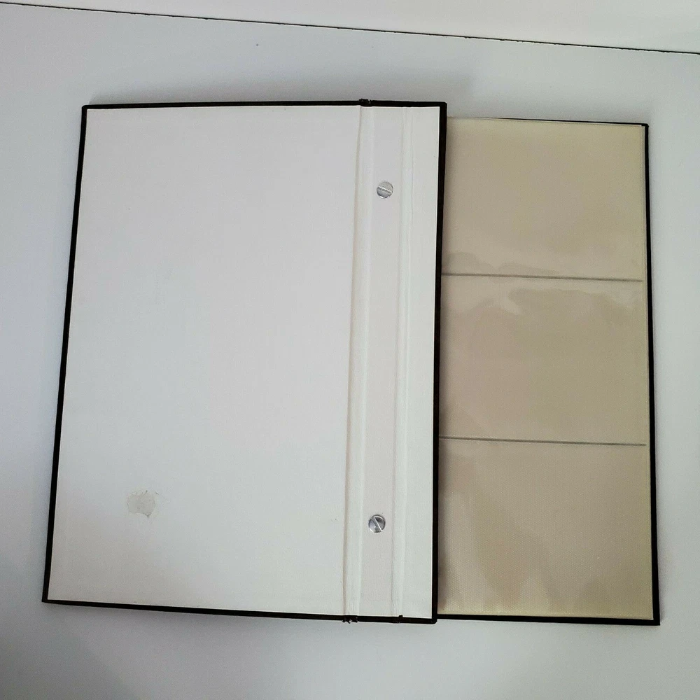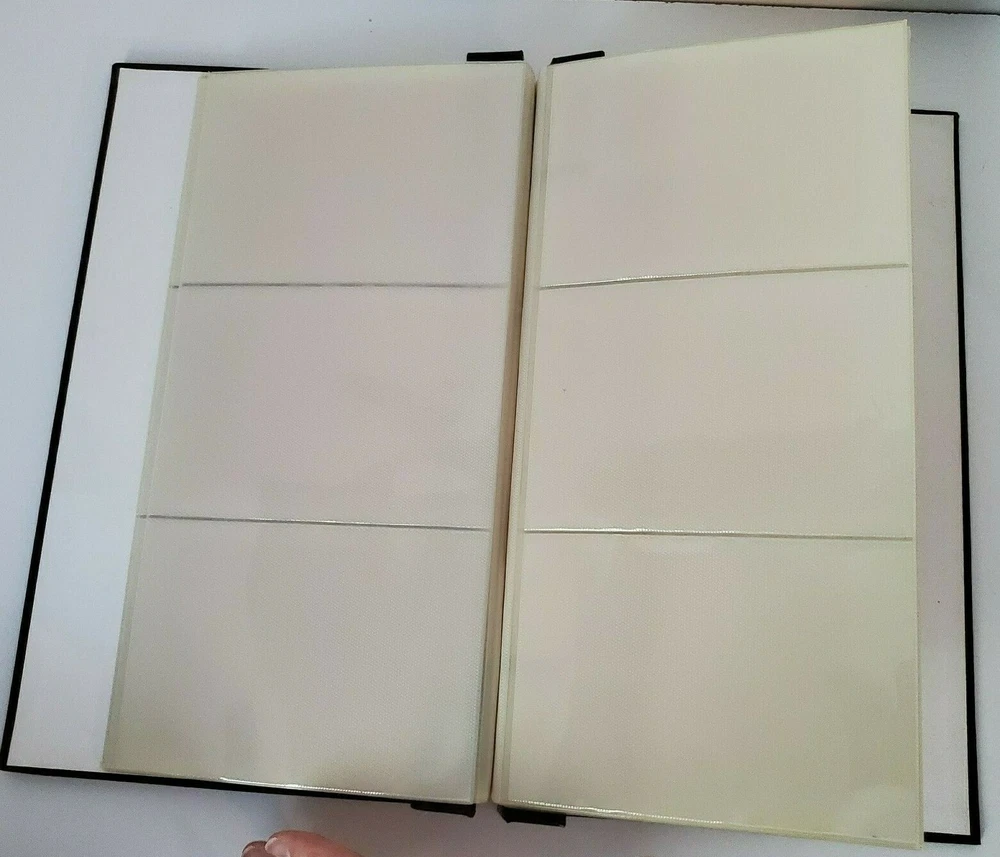 This listing is for a Black's photo album. Holds 60 photos. The album measures 13 inches (33 cms) by 7 5/8 inches(19.3 cms). The photos you put in it must be SMALLER than 4 inches by 6 inches. That is the size of the photos I have and they will not fit in it. In used condition. Empty. Cover shows a few marks/dents and damage to the corners. It has a small tear on the inside cover from the removal of a price tag and the first page has a small tear at one of the folds. Find more vintage photo albums in my eBay store!