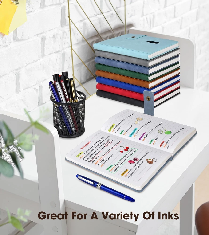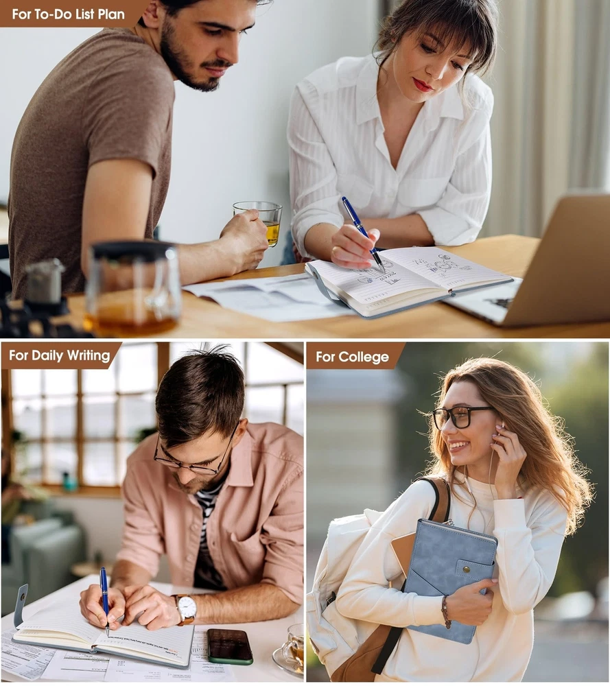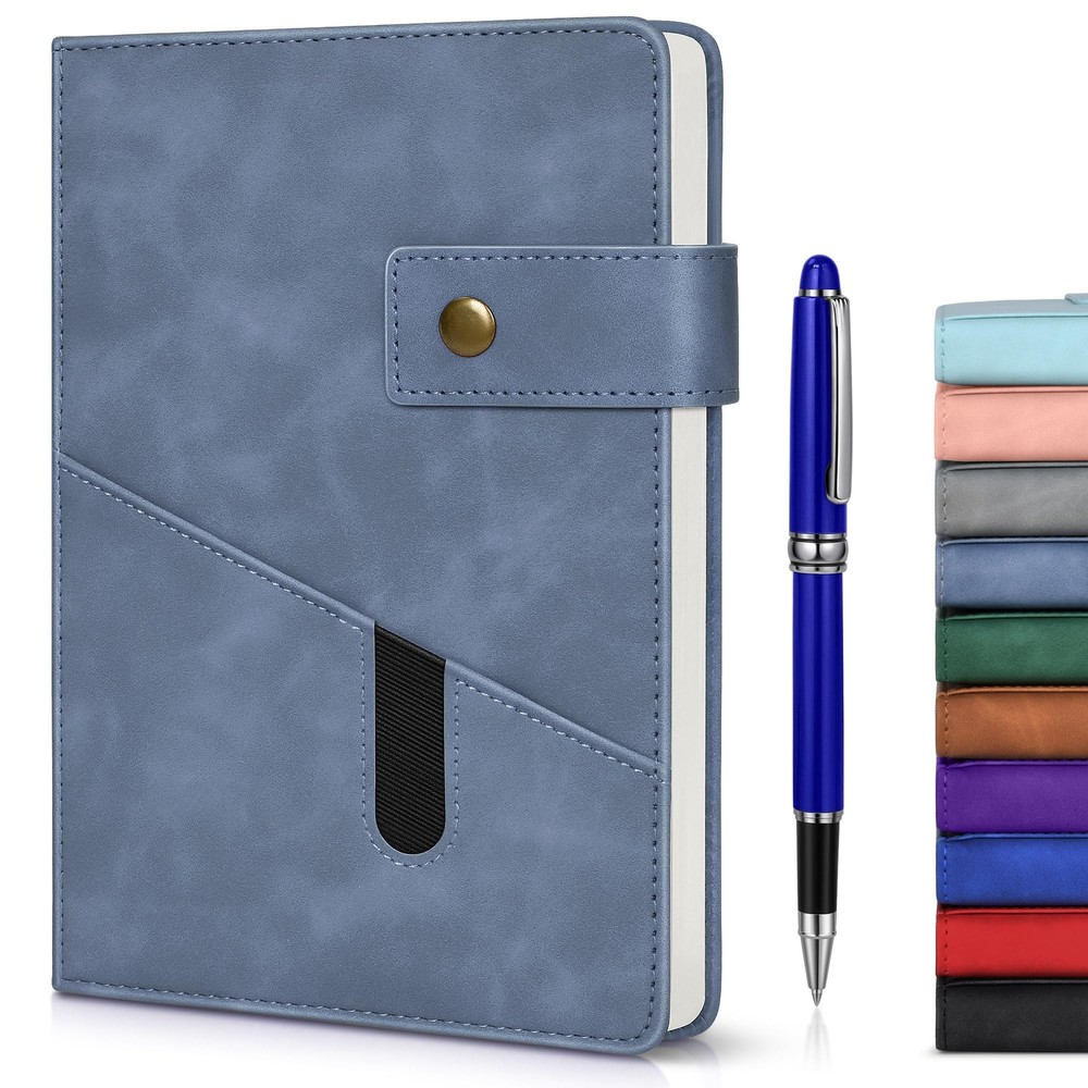 Blue A5 Lined Leather Journal Notebook for Men Women,5.9 X 8.4" Personalized Hardcover Journal with Pen,200 Pages 100 Gsm Thick Ruled Paper Daily Diary for School,Travel,Business,Work,Home Writing ✓ Free 60 Day Returns ✓ Free Express Shipping Description: Features: VALUE OF MONEY- Classic blue ruled notebook, journals are elegant, quality crafted books available at a surprisingly competive price and quality. A huge choice for everyday use, provides plenty of space for notes, lists, musings, and more. And each notebook will give away a luxury pen,This is one of our best journal pens gifts. PREMIUM THICK PAPER - 200 pages 100gsm thick lined paper, thicker 30% than normal, this blue notebook is designed to avoid feathering and the paper is ink-proof, suit for most pens, but the wettest pen inks. Archival-quality pages made from acid-free paper-resists damage from light and air, the cream paper is easy on eyes.Let your creation more freedom on the wide ruled journal to write in. FAUX LEATHER JOURNAL - This elegant Journal notebook has suede hardcover but feel soft in hand, just like a baby's skin. Fashion but durable cover adapts to the movements of body without damage. The notebook's hard cover protects the pages inside and doubles as a convenient writing surface. Great gift for any. Gusseted DESIGN - Gusseted Pocket DESIGN and Cardboard Bound Cover,metal buckle helps keep notebook securely closed, making it easy to write in the notebook from just about anywhere. This notebook provide you a high quality writing experience.Expandable Gusseted pocket for stashing loose notes,business cards, receipts, mobile phone, or other small items. Great Use & Perfect Journal GiftsIdeal for all office,school and home use,including for taking notes and keeping work in order,as a diary or journal for brainstorming ideas,creative writing or just doodling and drawing to your hearts content.This personalized journal notebook is a great birthday,mothers day,fathers day,children's day,graduation,Christmas journal Gifts.It is an ideal gift for mom,dad, teachers,classmates,colleagues,wife,husband,friends,daughters,sons and granddaughter. Product Details: Brand: vfaejll Color: Blue Theme: Book Sheet Size: A5 Pages: 200 Pages Cover Material: Faux Leather Style: minimalist Ruling Type: Ruled Special Feature: Soft cover Product Dimensions: 8.2"L x 5.7"W x 0.78"Th Brand: vfaejll Item Weight: 13.4 ounces Product Dimensions: 8.2 x 5.5 x 0.78 inches Item model number: vfaejll155881 Color: Blue Cover Material: Faux Leather Number of Items: 1 Size: A5 Ruling: Ruled Sheet Size: A5 Manufacturer Part Number: vfaejll155881 Date First Available: October 15, 2021