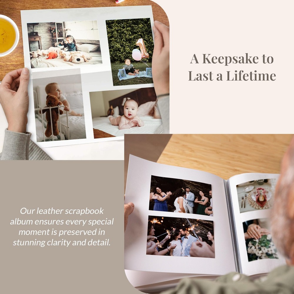 Elevate your memory-keeping with 's Bonded Leather Photo Album and Scrapbook, designed with a classically styled bonded leather cover and luxurious faux suede lining. This sophisticated design enhances both the aesthetic appeal and durability of your scrapbook, for a keepsake that lasts. Expandable Design The album includes 30 double-sided archival pages and optically clear pockets. Personalize the leather photo album 12x12 pages with scrapbooking materials, add captions, and more. The expandable post-bound system of our scrapbook allows for easy addition of pages as your collection grows. Whether documenting a wedding, a family adventure, or a series of milestones, this flexible design ensures ample space to preserve every special moment. Superior Safeguarding The rounded corners of this scrapbook reduce the risk of damage and crushing. Your memories will remain beautifully displayed and well-preserved for years to come. Personalize with a Special Touch Customize the cover of your scrapbook with the white accented window, designed to showcase a 4x6 photo. This feature lets you highlight a significant image or artwork, adding a unique and personal touch to your scrapbook. Choose Your Color Burgundy Caramel Black Navy Versatile and Memorable The Bonded Leather Scrapbook offers a stylish and durable solution for documenting occasions while perfectly complementing your picture frames (sold separately). From engagements and graduations to special holidays like Valentine’s Day and Father’s Day, this versatile scrapbook is also ideal for preserving kids' artwork. Create and cherish your memories in style—get your Bonded Leather Scrapbook today and start preserving your life's most treasured moments! Capture Every Moment: Featuring 30 double-sided archival quality white paper pages and clear pockets, this leather photo album offers space to showcase your photos and keepsakes. Our leather scrapbook album ensures every special moment is preserved in stunning clarity and detail. Elegant and Timeless Design: This adventure photo album and scrapbook for 12x12 pages boasts a classically styled bonded leather cover paired with a faux suede lining. Its refined appearance makes it a beautiful keepsake that you'll display for years to come. Expandable For Growing Collections: Customize your large leather scrapbook photo album (13.6 x 12.5 inches) to fit your evolving story. The expandable post-bound design allows you to add more pages as your collection of cherished memories grows. Guard Your Memories: Designed with rounded corners to minimize crushing and damage, this memory album scrapbook ensures that your cherished photos and mementos are well-protected. Personalize Your Cover: This large scrapbook leather album features a white-accented window that frames a 4x6 photo, allowing you to customize the cover. This detail lets you add a personal touch, making the scrapbook even more meaningful and memorable.