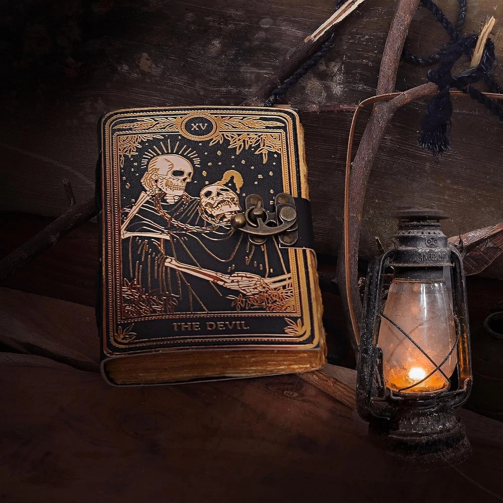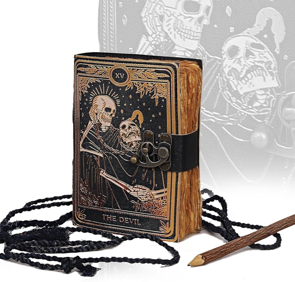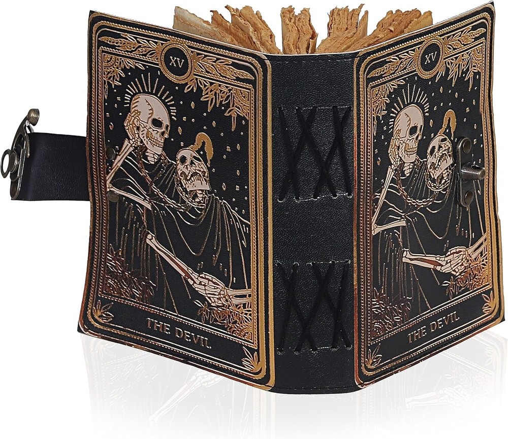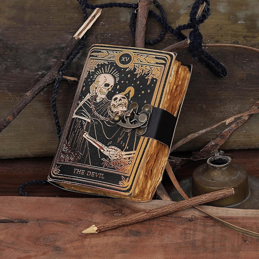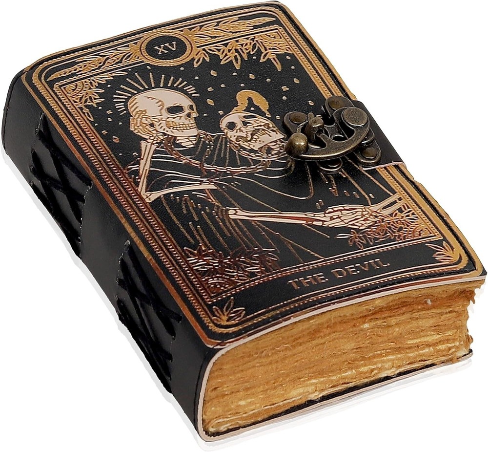 Welcome to Gahlous007 - A Complete Leather Shop BEAUTIFULLY CRAFTED : Our handmade artisan leatherbound spell book grimoire journals are crafted from genuine leather. The black coloring gives it a beautiful antique vintage feel. Being hand-made from natural leather. The cover features a beautiful gold designing.. PERFECT FOR GIVING : Suitable for both men or women to write in, this locking diary daily travelers notebook is perfect for an avid writer, or Harry Potter fan looking for a magic spell book. Ideal to give as a birthday gift, valentines, Halloween, graduation or wedding anniversary present. VINTAGE LOCK AND STURDY BINDING - The vintage clasp lock will keep all your valuable writing locked inside. Sturdy hand stitched binding to make sure that no paper comes out loose from your Spell BOOK. Spell Book Tarot Journal Merchandise Pop socket Grimoire Wiccan Witch Prop Spells Decor Skull Lovers Blank Notebook Gift Props Spell book Blanks With Clasp Coloring Books For Men Women Adult and you can keep this journal at your bedside as like memory of your loved ones.. USE ANY KIND OF PEN - Size: 5"X7" This Gothic gifts Sketch, Doodle, Write on your Book with a Calligraphy Pen Fountain Pen, Brush Pen, Ball Pen, Acrylic Colors, Watercolor and many more. We guarantee no bleed through. SIZE - 5X7 Inch. OUR PROMISE : We are positive you will love our products, but if you don't for any quality reason, we will replace or refund for up to 30 days after purchase. Our friendly customer service team are always available to answer any questions you might have. MANY USES - This aesthetic Lovers Journal Can be used as a Hocus Pocus gifts , the lovers tarot journal, gothic notebook, skull journal, spell books Halloween decorations, book of spells Halloween decor. grimoire spell book, drawing or sketching and compact for carrying in your bag. Ideal for alternative Artist Sketchbooks, Photo Album, Traveling Notes, Business Executive, Logbook, hocus pocus spell book , Journalists, Food Planner, old spell notebook, antique handmade skull journal Ordering Please be SURE you want the item Before you order. Please be SURE your shipping address in eBay is correct. Please be SURE to read the Description Before Ordering. Our systems are Automated and Super-Fast ... Once you place the order, it may not be possible to cancel the order. We check our messages about every 24 hours ... You sending a message is NOT the same as us instantly receiving it...we typically get it hours later. Payment We only accept immediate payment through the eBay checkout system. We accept PayPal only (*You can swiftly pay through PayPal with your credit card in just a minute … even if you don’t have PayPal Account). Shipping We ship within two business days of payment, usually sooner. Standard FREE shipping takes between 3-5 business days. We use a selection of shipping services such as UPS, FedEx, USPS etc. You will be notified by email with Tracking number. We do not accept P.O. BOXES -PLEASE PROVIDE A PHYSICAL ADDRESS. Terms of Sale Returns are accepted, p lease write to us before returning the item. Buyer should contact us within 30 days of receiving the item Refund will be given in refund or replacement on buyer's choice. Return shipping will be paid by the buyer. Item must be returned in its original condition. Please write to us for any clarification on RETURN POLICY About Us We are manufacturer and wholesaler of leather goods and specialized in Office Briefcases, Office Bag, College School bags, Travel Bag, Handbags, Purses, Wallets, leather journals and diaries and many more. We use quality leather of Goats and Camel. We offers customize designing and wholesale prices for bulk order. For more details, please write to us. Please visit our store and have a look of our other items If anything unanswered, please do write to us. Please contact us via eBay with any questions you have about our products. We normally respond to any questions within one or two working days. Feedback & DSR If there is any problem with product or delivery, p lease contact us BEFORE leaving the feedback and below 5 star rating. 100% customer satisfaction is our goal. Your 5 Star rating will help us to reduce cost in your next purchase. Happy Shopping!!!