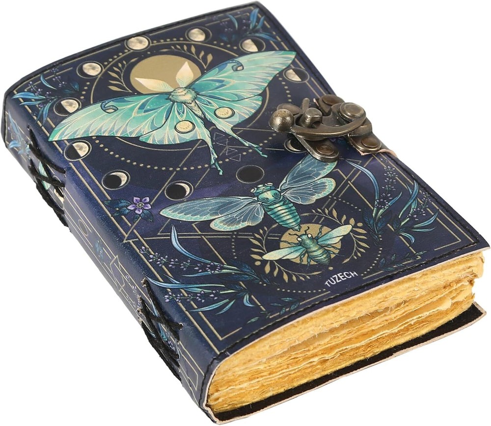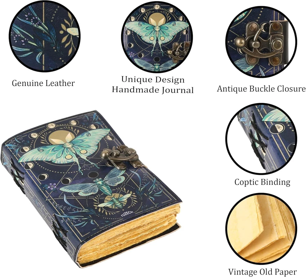Book of Spells Leather Bound Moths Journal Deckle Edge Paper Grimoire Printed Diary Witchcraft supply and Witch Spell Notebook Antique Vintage Book for Men and Women MYSTICAL DESIGN: Immerse yourself in the enchanting world of magic with our Book of Spells Leather Bound Journal featuring an intricate design inspired by The Moths and Morpho Butterfly, evoking the ethereal beauty of these mystical creatures. VINTAGE LOCK AND STURDY BINDING - The vintage clasp lock will keep all your valuable writing locked inside.Sturdy hand stitched binding to make sure that no paper comes out loose from your Spell Book. PERFECT FOR GIVING: Suitable for both men or women to write in, this locking diary daily travelers notebook is perfect for an avid writer, or Harry Potter fan looking for a magic spell book. Ideal to give as a birthday gift, valentines, halloween, graduation or wedding anniversary present. GOTHIC ELEGANCE: Infused with gothic elegance, the journal's design is adorned with intricate details that capture the essence of mysticism, creating an atmospheric setting for your spiritual practices. Handcrafted to perfection by the artisans of Rajasthan, India. OUR PROMISE: We are positive you will love our products, but if you don't for any quality reason, we will replace or for up to 30 days after purchase. Our friendly team are always available to answer any questions you might have. MANY USES - This aesthetic Lovers Journal Can be used as a Hocus Pocus gifts , the lovers tarot journal, gothic notebook, skull journal, spell books halloween decorations, book of spells halloween decor. grimoire spell book, drawing or sketching and compact for carrying in your bag. Ideal for alternative Artist Sketchbooks, Photo Album, Traveling Notes, Business Executive, Logbook, hocus pocus spell book , Journalists, Food Planner, old spell notebook, antique handmade skull journal. It's an Eco-friendly handmade leather journal with beautiful cover. The journal is consisting of handmade Sketch papers (khadi papers). Every page of this diary will become a gem with your precious memories. Usage: Personal journal, gift for women, gift for men, holiday gift, mother's day gift, father’s day gift, birthday gift, Valentine’s Day gift, vintage collection. Product Details: Dimensions: Length - 7 inches x Width - 5 inches Handcrafted out of the finest quality of leather Comes with a front and back floral design, a stone on front , a metal lock & 240 pages of unruled handmade papers Highly durable & functional, this decorative record book can be used for writing, noting & jotting, sketching, doodling or recording personal as well as professional activities Handcrafted to perfection by the artisans of Rajasthan, India Safety and Precautions: The journal is made of leather and drawing papers which should be protected from water. Its not Refillable Shipping We ship within Three business days of payment, usually sooner. Some delivery times are longer than normal due to increased demand. We use a selection of shipping services such as UPS, FedEx, USPS etc. We only ship to the lower 48 states, no APO/FPO addresses or PO Boxes allowed. Local pickups and combined shipping options are not provided at this time. Return You can return a product for up to 30 days from the date you purchased it. Any product you return must be in the same condition you received it and in the original packaging. Please keep the receipt. Payment We accept payment by any of the following methods: PayPal Please pay as soon as possible after winning an auction, as that will allow us to post your item to you sooner! Feedback Customer satisfaction is very important to us. If you have any problem with your order, please contact us and we will do our best to make you satisfied. Contact Us If you have any queries, please contact us via ebay. We usually respond within 24 hours on weekdays. Thank you for shopping at our store.
