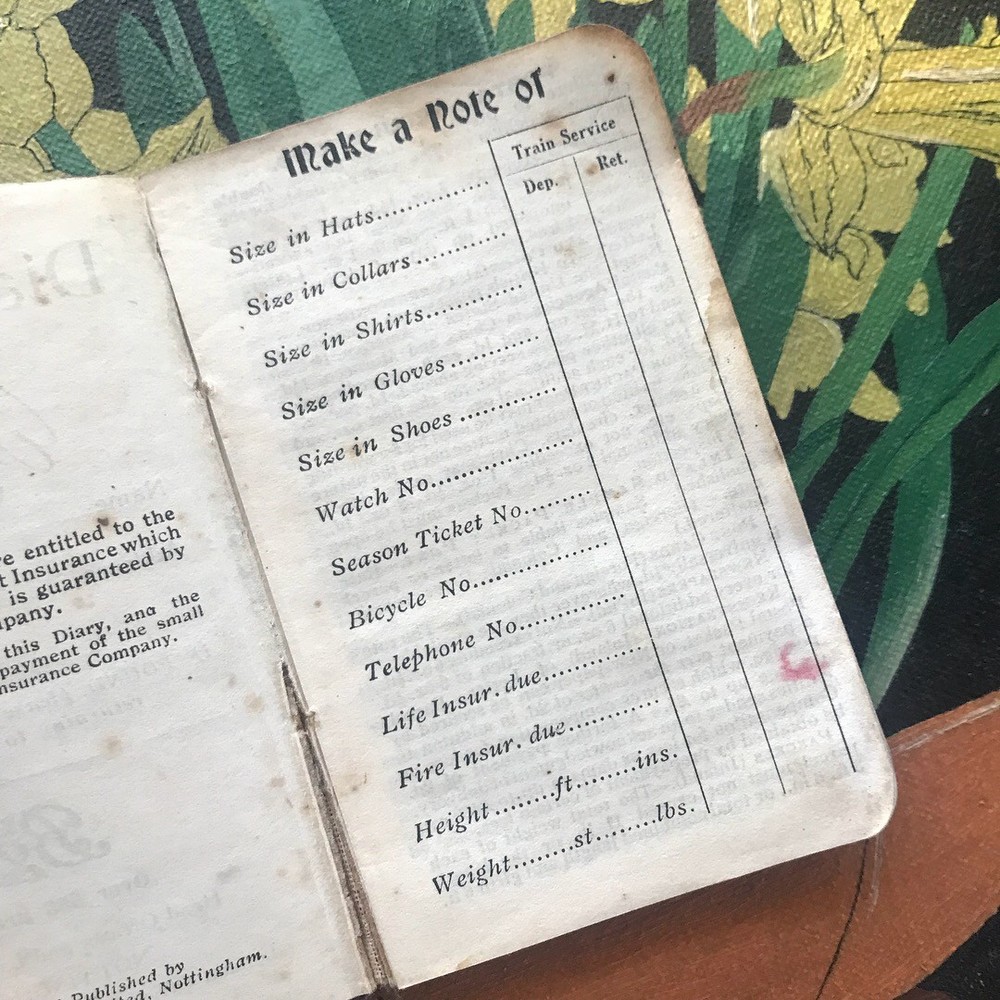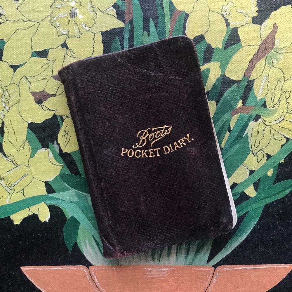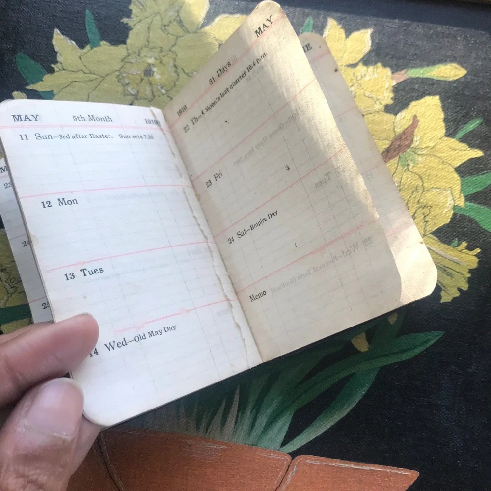 Brief History: “Boots” (also known as The Boots Chemists”) was originally an herbal medicine shop in Nottingham, England, founded in 1849 by John Boot. Boots diversified into the research and manufacturing of drugs during the 1960’s with its development of the Ibuprofen painkiller, invented by John Nicholson and Stewart Adams. The Boots pharmacy is still in business today, although under fire for accusations and concerns that the once family company dedicated to serving society, is now putting profit before the public and its safety. Details: This Boots pocket diary is from the year 1919 and was mainly used for addresses and random notes. Leather and binding are intact, although loose. Over half of the pages are blank. One page has been ripped out. Half of the front page has also been ripped out. This diary was found at a beautiful historic estate on the North Shore of Chicago. Addresses range from Chicago to Europe. Diary measures: 4" H x 2.5" W Please message us should you have any questions.