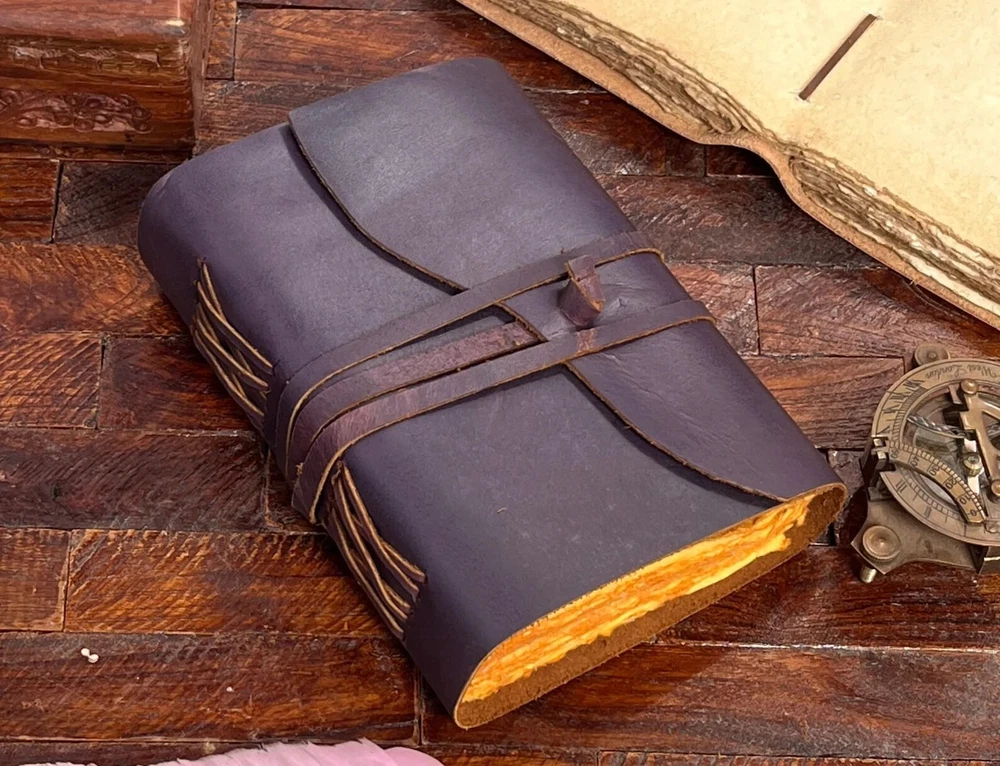 This luxury edition leather journal is a meticulously crafted handmade item, perfect for those who appreciate quality and uniqueness. Ideal for travel, daily writing, or as a sketchbook, this limited edition vintage paperback journal is personalized to your liking. With a luxurious cover made of leather and being a 1st edition piece, it adds a touch of sophistication to your writing or creative endeavors. Imported from India, this special notebook is sure to stand out as a treasured addition to your office supplies or personal collection. Bound notebook, sketchbook, Scrapbook, Daily Writing book leather journal Travel journal Antique journal Handmade leather grimoire book ★ Name :- bound book This Journal Is Made From A High Quality Leatherette With Vintage Looking Paper ★ DIMENSIONS :- The Journal Is Available In 4 Perfect Sizes. 8 Inches" x 6 Inches. 7 Inches" x 5 Inches. 10 Inches" x 7 Inches. 13 Inches" x 10 Inches. ★ PAPER :-The Inside Of This Journal Is Handmade Decal Edge Paper That Looks Vintage And Well Stitched Whose Number Is 200 (Please Count Both side) If You Want White Plain Paper So Please Select Right Paper Option There Are Two Options Available. ★ HANDCRAFTED FROM GENUINE LEATHER: Each Journal Is Specially Designed And Handmade From Premium Leather. Artful Hand Stitching To Create A Timeless Space For Your Thoughts. ★ TELL YOUR STORY :- We Designed This Classic Leather Journal As A Time Capsule For Your Thoughts. Capture Your Important Memories, Accomplishments (And Failures), Life-Changing Moments And Evolving Dreams As A Keepsake To Reflect Upon In Years To Come. ★ THE PERFECT GIFT :-Quality You Can Trust: High-Quality Craftsmanship Makes This An Essential Tool For Poetry, Art, Sketching, Writing, Drawing, Calligraphy Leather Journal Give Your Loved Ones A Thoughtful Gift That Will Last For Years To Come! Great For A Birthday, Anniversary, Or Graduation