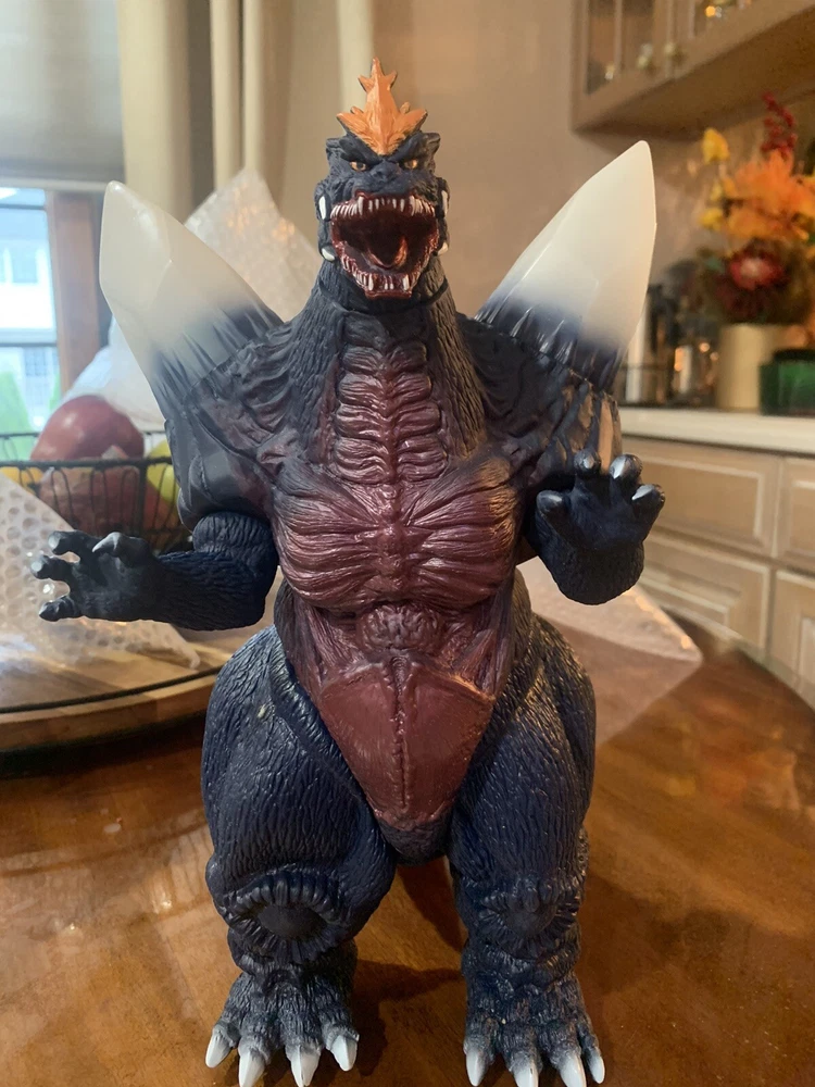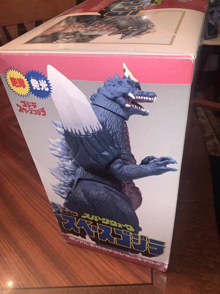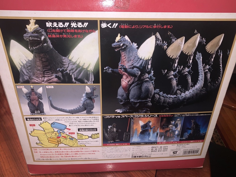 Hello today you are buying a Brand New Bandai Walking Bandai Walking Light Up Space Godzilla. 285mm (11 3/4 inches tall x 15 inches long) Comes in original box. Made in 1994 by Bandai Japan. Runs on four AA Batteries (not included) The art box is a 9.5 to 9.8 out of 10 Made in 1994 by Bandai Japan. He will walk He will scream or roar But best part his shoulder crystals light up in a lime green color or spark like very very cool Shipping is 20 dollars inside the USA International bidders are welcome International shipping is done by eBay only no exceptions I’m a USA seller International bidders are welcome International shipping is done by eBay only no exceptions I sell many Godzilla items plus military models old HO race cars one of kind item cds dvds train cars Albums etc Thanks for looking Eric86