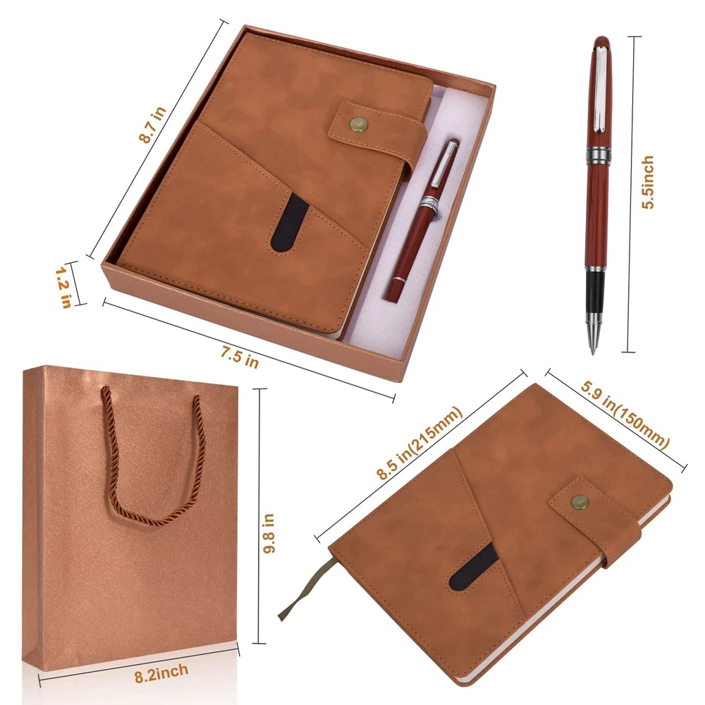 Brown A5 Lined Leather Journal Notebook,Personalized Hardcover Journal Set with Pen & Gift Box,100Pages 100gsm Thick Ruled Paper Daily Diary for Men Women School,Travel,Business,Work,Home Writing ✓ Free 60 Day Returns ✓ Free Express Shipping Description: Features: Value of Money Hardcover Journal Set- Classic brown ruled notebook, journals are elegant, quality crafted books available at a surprisingly competive price and quality. A huge choice for everyday use, provides plenty of space for notes, lists, musings, and more. And each notebook will give away a luxury metal penexquisite gift box packaging and bags,This is one of our best journal gifts. Premium Thick Paper- 5.9 X 8.4 inch Journal Notebook with 200 pages 100 gsm lined paper, thicker 30% than normal, this brown notebook is designed to avoid feathering and the paper is ink-proof, suit for most pens, but the wettest pen inks. Archival-quality pages made from acid-free paper-resists damage from light and air, the cream paper is easy on eyes.Let your creation more freedom on the wide ruled journal to write in. Soft Faux Leather Journal Notebook- This elegant Journal notebook has suede hardcover but feel soft in hand, just like a baby's skin. Fashion but durable cover adapts to the movements of body without damage. The notebook's hard cover protects the pages inside and doubles as a convenient writing surface. Great gift for any. Gusseted Design- Gusseted Pocket DESIGN and Cardboard Bound Cover,metal buckle helps keep notebook securely closed, making it easy to write in the notebook from just about anywhere. This notebook provide you a high quality writing experience.Expandable Gusseted pocket for stashing loose notes,business cards, receipts, mobile phone, or other small items. Great Use & Perfect Journal GiftsIdeal for all office,school and home use,including for taking notes and keeping work in order,as a diary or journal for brainstorming ideas,creative writing or just doodling and drawing to your hearts content.This personalized journal notebook is a great birthday,mothers day,fathers day,children's day,graduation,Christmas journal Gifts.It is an ideal gift for mom,dad, teachers,classmates,colleagues,wife,husband,friends,daughters,sons and granddaughter. Product Details: Brand: vfaejll Color: Brown with Gift Box Theme: Book Sheet Size: A5 Pages: 200 Pages Cover Material: Leather Style: Lined Journal Notebook Ruling Type: Ruled Special Feature: Soft cover Number of Items: 1 Manufacturer: vfaejll Brand: vfaejll Item Weight: 3.53 ounces Product Dimensions: 8.4 x 5.9 x 0.78 inches Color: Brown with Gift Box Cover Material: Leather Number of Items: 1 Size: A5 Ruling: Ruled Sheet Size: A5 Manufacturer Part Number: vfaejll155881 Date First Available: June 28, 2022