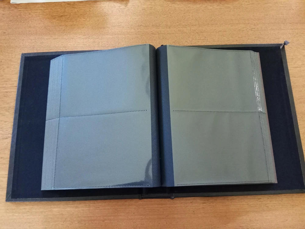 Brown Faux Leather Photo Album, Max. 200 5x7" Slip In Prints Outside Cover measures 11" wide and 13" top to bottom lying flat Each page contains 2 slip in photo sleeves on each side. Condition: Pre-owned, Excellent ~ never used before! This heavy duty album weighs 4 pounds.