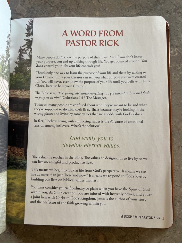 Building Your Life On Values That Last by Rick Warren 2018 Leather Bound Journal Very Good condition minor flaws see pictures Pet smoke free home