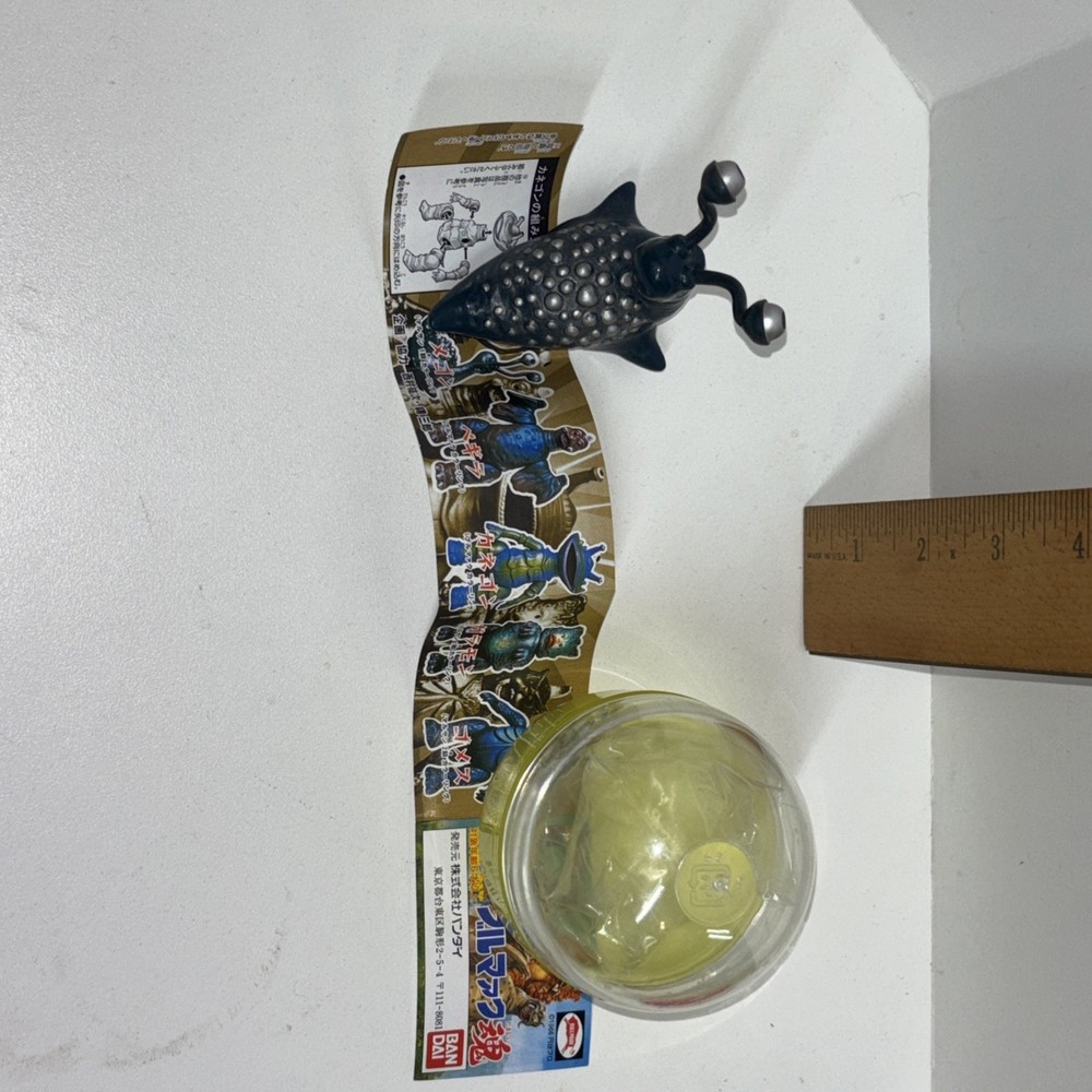 This Bullmark Namegon Sofubi 3.5" Vinyl Figure is a vintage collectible from the Ultraman franchise, specifically from the TV show Ultra Q. This multicolored figure features the character Kanegon in its original form, made of vinyl material. It comes with a Gashapon Egg included, adding to its appeal for collectors. This rare action figure from the year 2001 is a part of the Soul Of Bullmark series, making it a valuable addition to any Ultraman or Kaiju enthusiast's collection. *** Figure was used for display only. Includes case and original paperwork. Please check the pics! ***