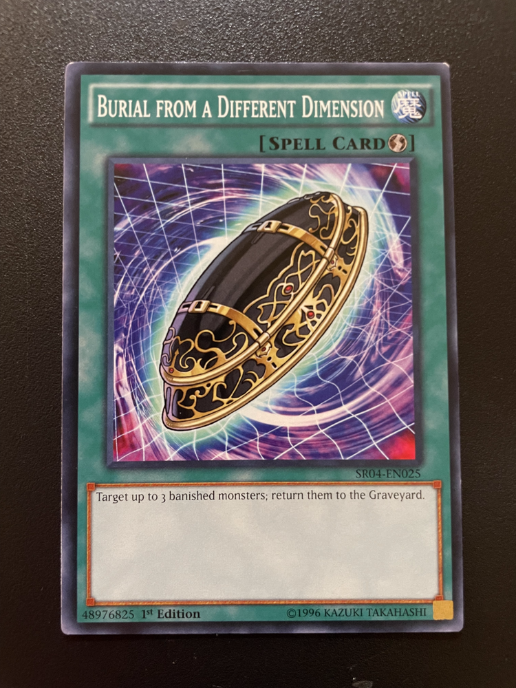 Burial from a Different Dimension - Structure Deck: Dinosmasher's Fury 1st Ed LP The card is in LP condition. Card comes with Sleeve and Top Loader. I only ship in the Continental United States...