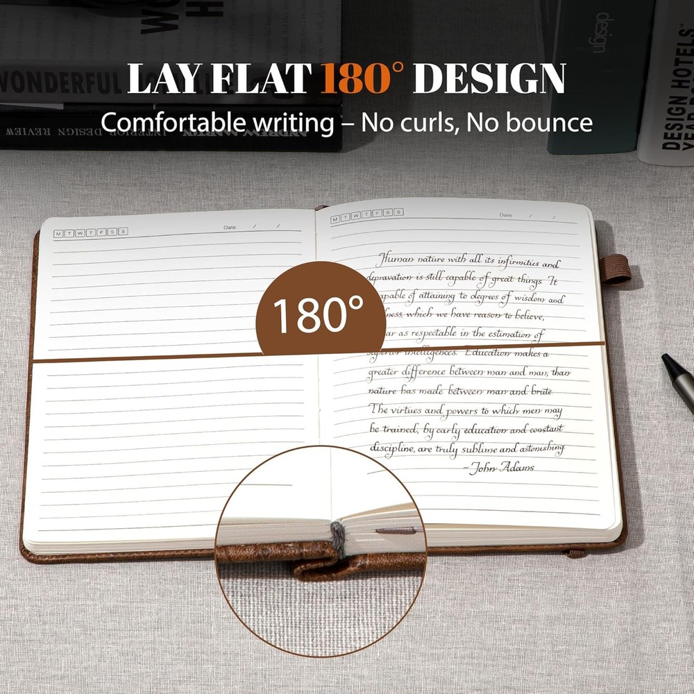 This journal is a perfect blend of style and function! The textured tree ring design on the vegan leather cover looks elegant and meaningful, symbolizing growth. The paper quality is fantastic—no ink bleed, smooth writing, and the compact size makes it easy to take anywhere. Feels luxurious yet practical for daily use. Highly recommend!