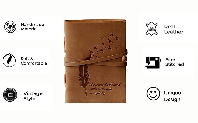 This handmade leather-bound diary is absolutely stunning—the embossed leaf design gives it such a unique, elegant touch. The thick, no-bleed pages are perfect for journaling, sketching, or creating travel collages without worrying about ink smudges. I love using it for calligraphy and watercolor—the quality is amazing! The craftsmanship makes it a perfect gift for any art lover, and the luxurious feel earns compliments every time I carry it. It’s more than just a journal; it’s a keepsake for memories and creativity. Highly recommend!