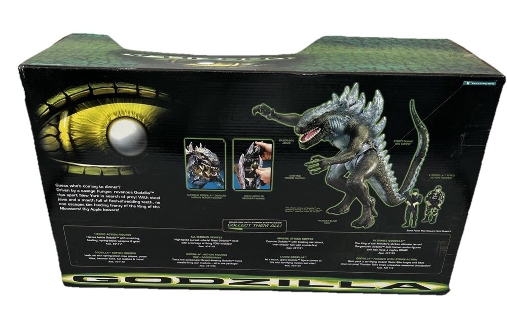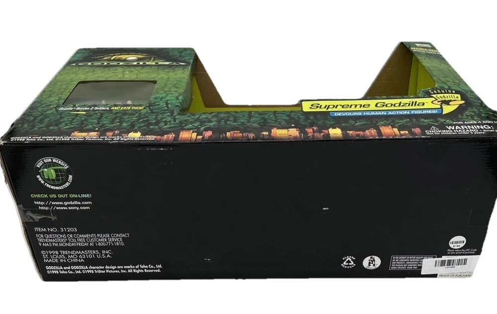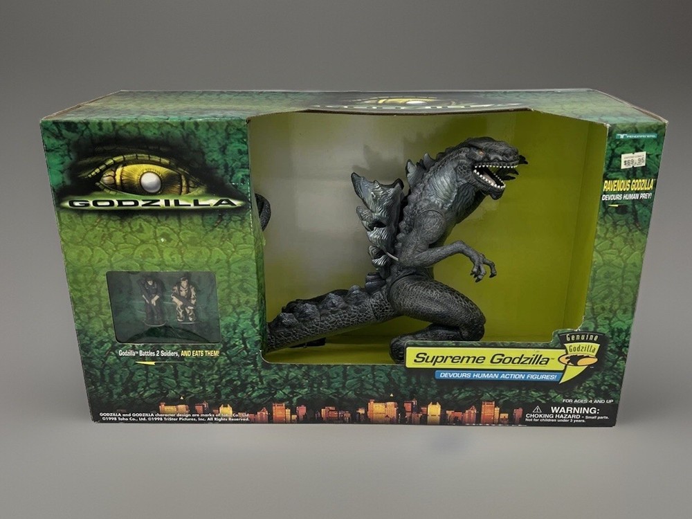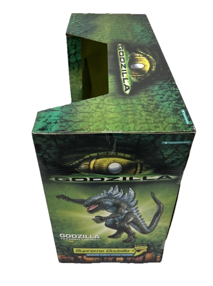CIB VTG 1998 GODZILLA SUPREME GODZILLA FIGURE SET TRENDMASTERS Used Open Box - Seals are broken. Item is still new. This is a vintage 1998 Godzilla Supreme Godzilla figure set by Trendmasters. The set includes a highly detailed and collectible Godzilla figure, perfect for fans of the monster genre. The figure is part of the Godzilla theme and is sure to be a great addition to any collection.