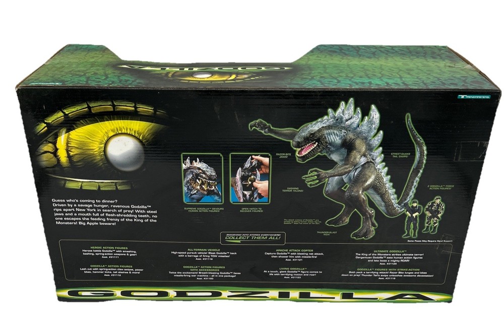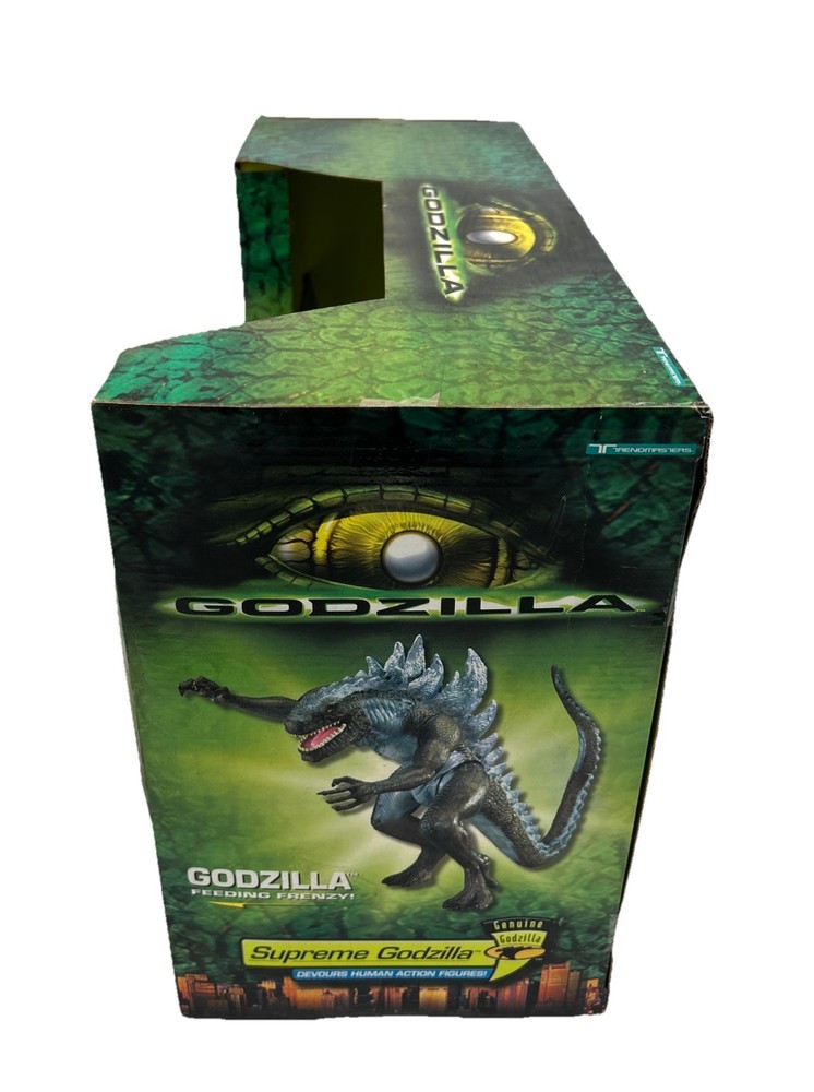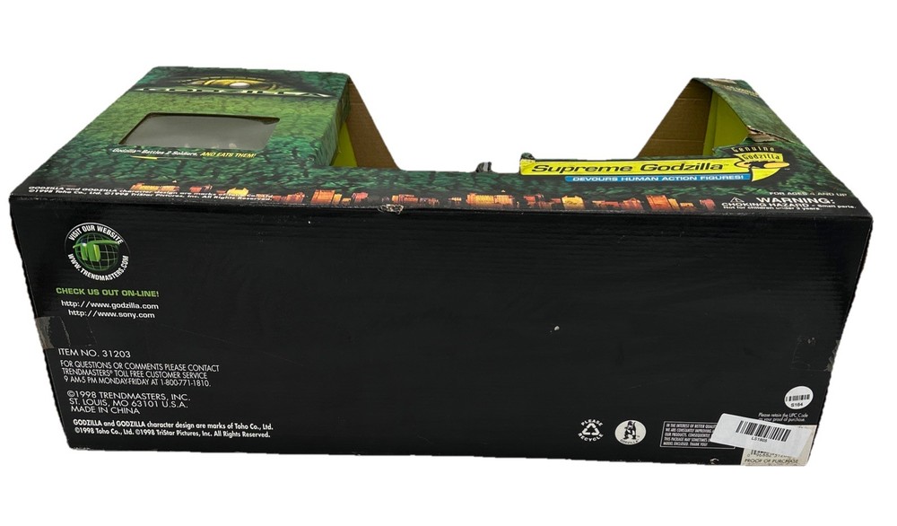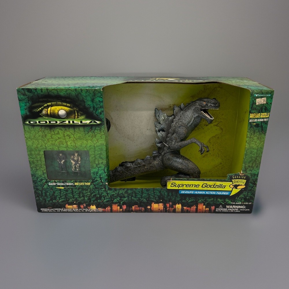 CIB VTG 1998 GODZILLA SUPREME GODZILLA FIGURE SET TRENDMASTERS Used Open Box - Seals are broken. Item is still new. Noticeable dirt build up. Rip on package. See pictures. This is a vintage 1998 Godzilla Supreme Godzilla figure set by Trendmasters. The set includes a highly detailed and collectible Godzilla figure, perfect for fans of the monster genre. The figure is part of the Godzilla theme and is sure to be a great addition to any collection.