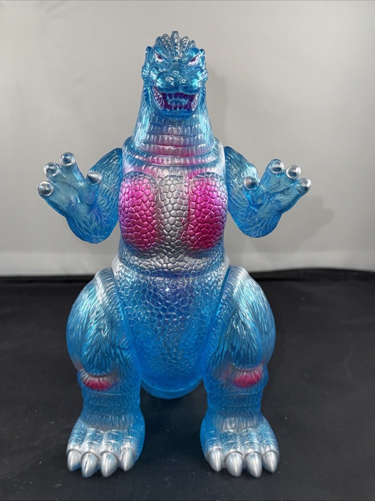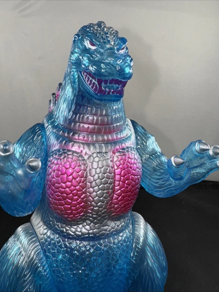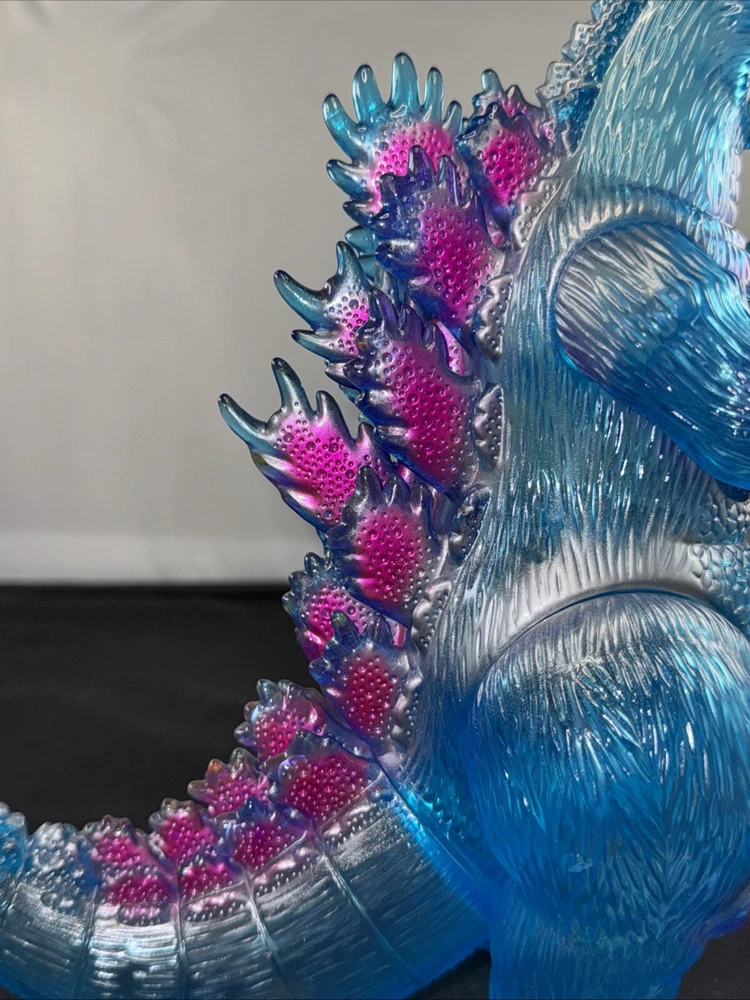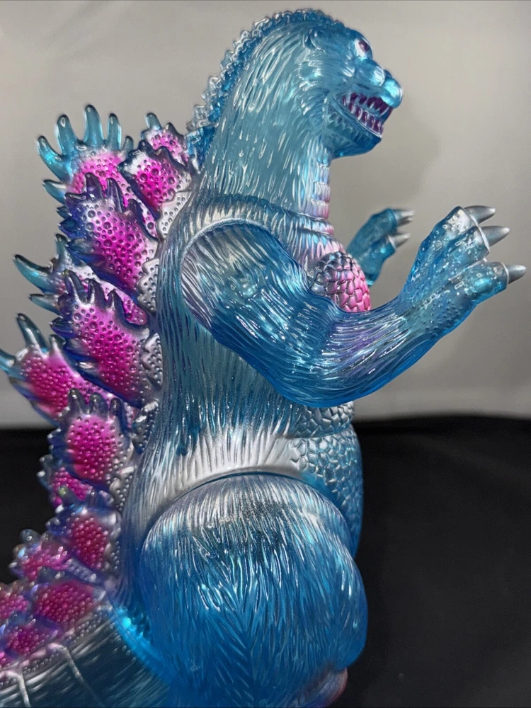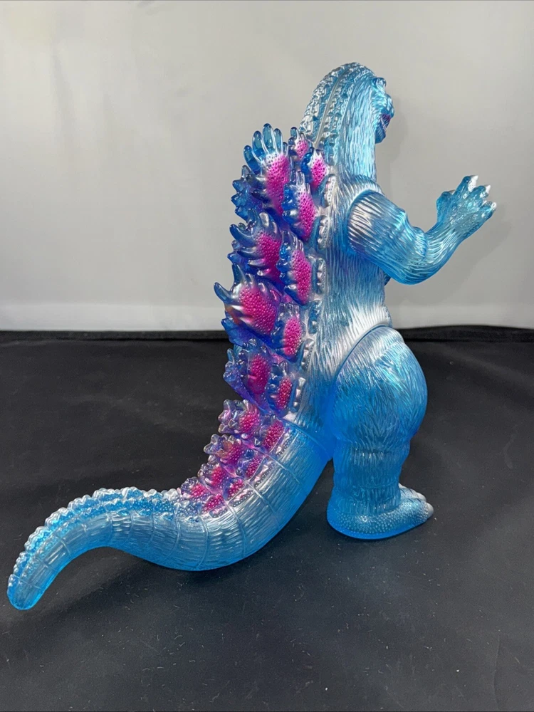 CUSTOM PAINTED MARUSAN 9” GODZILLA 1989 CLEAR BLUE Figure SOFUBI JAPAN This one was a boring old, clear blue blank with no paint on it at all. We added some silver and metallic pink and man does this ...