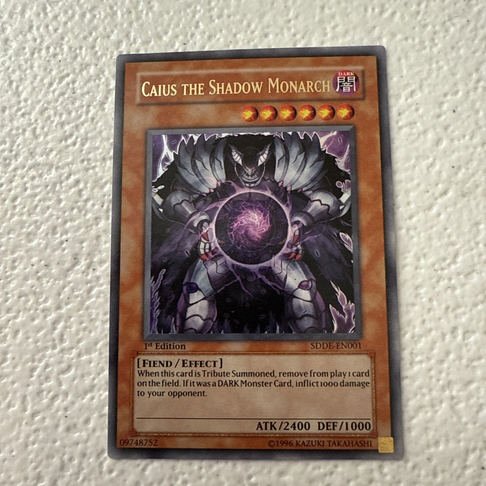 Caius the Shadow Monarch is an ultra rare 1st edition card from the Structure Deck: Dark Emperor set in the Yu-Gi-Oh! TCG. Manufactured by Konami, this foil card is numbered SDDE-EN001. As a powerful addition to any collector's card game collection, this card brings a unique and special element to players of the game looking to enhance their decks with rare and sought-after cards.
