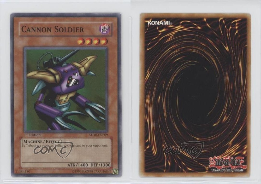 2007 Yu-Gi-Oh! Machine Re-Volt - Structure Deck [Base] - 1st Edition #SD10-EN009 Cannon Soldier COMC Item: 48937897 - YuGiOh Card - Featuring Cannon Soldier Search for more: 2007 Yu-Gi-Oh! Machine Re-Volt Search for more: 2007 Yu-Gi-Oh! Machine Re-Volt - Structure Deck [Base] - 1st Edition View all of our Listings Auctions Buy It Now About Us Located in the beautiful Pacific Northwest, COMC (Check Out My Cards) is the world's largest consignment service for trading card singles. More than 10,000 people have used our consignment service to list over 50 million trading cards. Find out how we can help you consign your items on eBay by contacting us through eBay messaging. COMC -- "The Safe & Easy Way to Buy & Sell" Raw Condition for Modern Cards Unless otherwise noted, raw modern cards are listed in Near Mint-Mint condition or better. A NM-MT card appears to be Mint at first glance, but upon closer inspection, may exhibit some of the following: minor print defects (e.g. roller marks, print line, dimple), minor scratches, slight edge wear, and slight corner wear. Centering is clearly visible in the images provided and does not factor into our condition assessment. Raw Condition for Vintage Cards Unless otherwise noted, raw vintage cards are listed in Excellent condition or better. An EX card may exhibit some of the following: minor rounding of corners, surface wear, print defects, light scratches, and slight edge wear/chipping. Centering is clearly visible in the images provided and does not factor into our condition assessment. Domestic Shipping Combined shipping for multiple items is available. To receive combined shipping, please ensure all desired items are in your eBay shopping cart before proceeding to checkout. eBay limits orders to 40 items per order. We automatically combine multiple orders placed on the same day. If you place multiple orders on the same day, please contact us to request a refund of applicable shipping costs. Signature confirmation may be required on invoices over $400. All cards are protected and shipped securely. International Shipping COMC offers eBay's International Shipping (EIS) for international orders under $2,500* (see country exceptions below). All duties and import fees are paid at checkout; in the rare event that there are additional import fees upon delivery, these are borne by the buyer. EIS packages route through a shipping hub in Erlanger, KY before shipping to their final destination. Please note that EIS does not allow for combined shipments. The shipping rates are determined by eBay and cannot be adjusted. *Maximum sale price exceptions: Colombia, Kuwait ($2,000); Taiwan ($1,539); Chile, Costa Rica, Guatemala, Honduras, Trinidad and Tobago ($1,000); Antigua and Barbuda, Aruba, Belize, Dominica, Grenada, Philippines, Saint Kitts and Nevis, Saint Lucia, Montserrat, Turks and Caicos Islands ($500); Dominican Republic, El Salvador ($200). Please request a shipping quote through eBay messaging for orders that exceed the maximum sale price supported by eBay's International Shipping. You will be responsible for all duties and import fees for international orders shipped outside the EIS. All cards are protected and shipped securely. Payment COMC does not accept offers on our cards through our eBay storefront. COMC utilizes eBay’s managed payments system. If you are experiencing difficulties making a payment, please contact eBay for assistance. Return Policy Returns are only accepted on the rare occasion the item is not as described. If you are making a return, please initiate the return process through eBay so a mailing label can be provided for you. Prior to listing, our expert team carefully assessed this item to represent it accurately. Please review the description and high-definition images prior to purchasing to ensure this item meets your satisfaction. We welcome you to contact us if you have further questions about this item. Trust and Integrity COMC carefully assesses each item consigned to us to prevent fraudulent items from entering the marketplace. If you believe an item offered on COMC may be fraudulent, please contact us with details so we can investigate the issue. Items we determine are outside our supported items policy may be removed. Last Modified: 5/28/2025 8:16:16 PM PDT