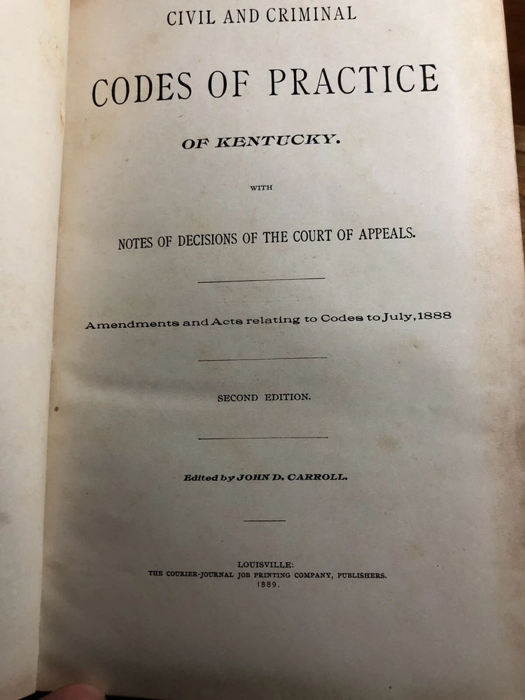 Carroll’s Kentucky Stautes, 1922 6th Edition, Baldwin Blue Book. Shipped with USPS Priority. Please see all pics. This book is in good condition for its age. Binding is sound. The pages are all present. There is one ribbon page marker. The original owners sticker is glued to top spine area. Thanks for shopping with us!