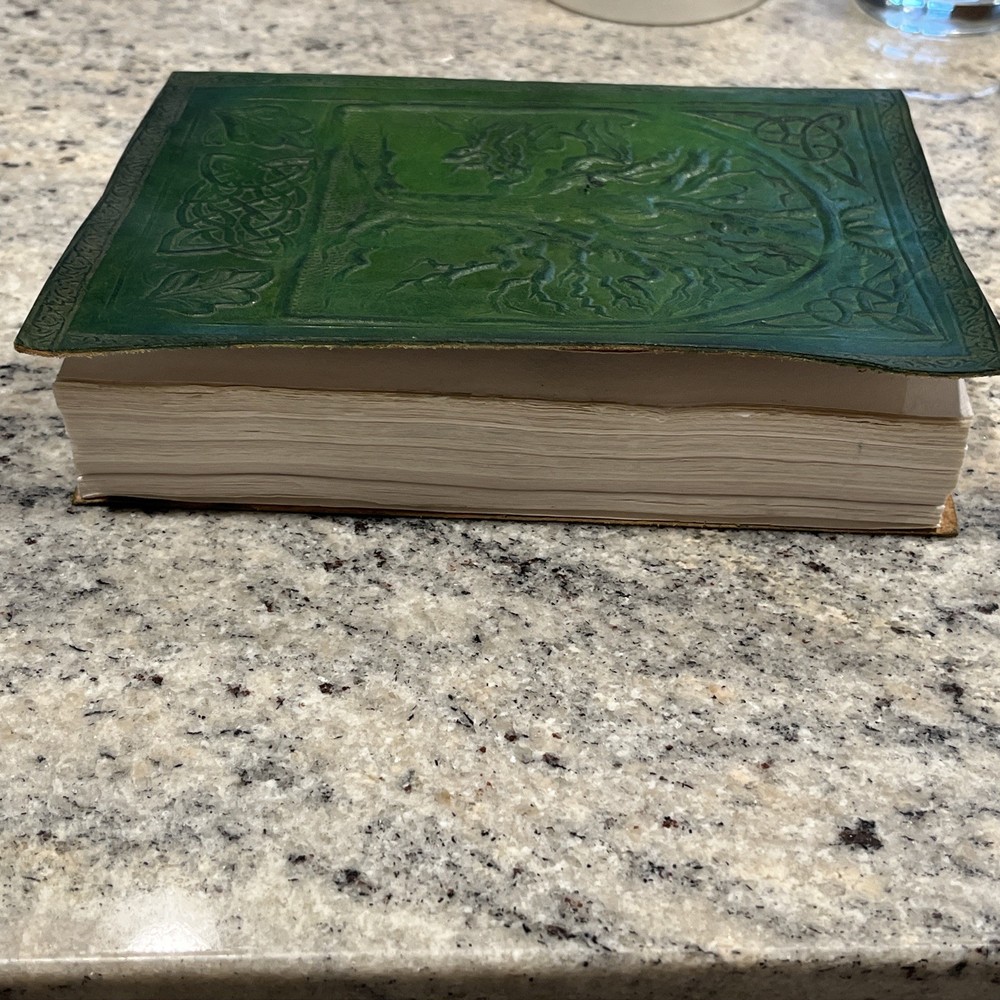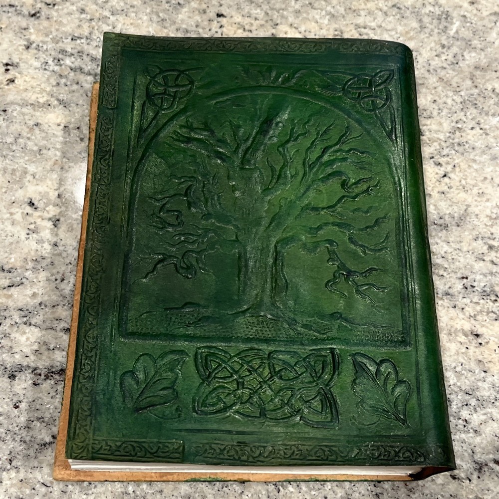 Delve into the mystical embrace of nature with the Celtic Pagan Wicca Tree of Life journal. This A5-sized, handmade leather diary is an ode to traditional craftsmanship, featuring a beautifully crafted cover made from dried leather. Its rich green hue and symbolic design are sure to make it a cherished companion for any room. The cover is a hard type, dried leather. It is unused and handmade. Please ask questions no refunds no returns.