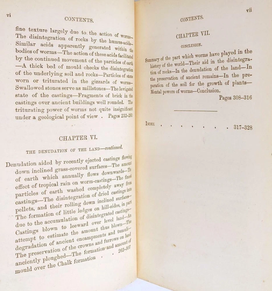 Leather. 8vo. John Murray. 1883. vii, 328 pgs. 1 pgs of ads. Illustrated with Black and White Diagrams. Nine Thousand. Bound in full brown leather with gilt decoration present to the boards. With gilt titles and raised bands present to the spine. Marbled endpapers. Gilt dentelles. No ownership marks present. Boards have light wear to the extremities. Text is clean and free of marks. Binding tight and solid. Published in 1883, The Formation Of Vegetable Mould, Through The Action of Worms covers, in depth, the important role of the earthworm on the constantly changing topsoil of the earth. The Formation of Vegetable Mould through the Action of Worms, with Observations on their Habits (sometimes shortened to Worms) is an 1881 book by Charles Darwin on earthworms. It was his last scientific book, and was published shortly before his death (see Darwin from Insectivorous Plants to Worms). Exploring earthworm behaviour and ecology, it continued the theme common throughout his work that gradual changes over long periods of time can lead to large and sometimes surprising consequences. It was the first significant work on soil bioturbation, although that term was not used by Darwin (it first appeared in the soil and geomorphic literature one hundred years later). Charles Darwin in Fine Leather 1883 Formation Of Vegetable Mould Bioturbation Description: Up For Sale Today is The Formation of Vegetable Mould Through The Action Of Worms, With Observations On Their Habits by Charles Darwin Leather. 8vo. John Murray. 1883. vii, 328 pgs. 1 pgs of ads. Illustrated with Black and White Diagrams. Nine Thousand Bound in full brown leather with gilt decoration present to the boards. With gilt titles and raised bands present to the spine. Marbled endpapers. Gilt dentelles. No ownership marks present. Boards have light wear to the extremities. Text is clean and free of marks. Binding tight and solid. Published in 1883, The Formation Of Vegetable Mould, Through The Action of Worms covers, in depth, the important role of the earthworm on the constantly changing topsoil of the earth FROM WIKIPEDIA: The Formation of Vegetable Mould through the Action of Worms, with Observations on their Habits (sometimes shortened to Worms) is an 1881 book by Charles Darwin on earthworms. It was his last scientific book, and was published shortly before his death (see Darwin from Insectivorous Plants to Worms). Exploring earthworm behaviour and ecology, it continued the theme common throughout his work that gradual changes over long periods of time can lead to large and sometimes surprising consequences. It was the first significant work on soil bioturbation, although that term was not used by Darwin (it first appeared in the soil and geomorphic literature one hundred years later). After returning from the Beagle survey expedition in October 1836, Darwin was intensively occupied with further establishing his reputation as an innovative geologist, as well as finding suitable experts to describe his natural history collections and arranging for publication of their work as the multi-volume Zoology of the Voyage of H.M.S. Beagle. Near the outset of the voyage he had planned a book on geology, and during it extracts from his letters on geology had been privately published by his tutor John Stevens Henslow. Darwin now published papers on "proofs of recent elevation on the coast of Chili", "deposits containing extinct Mammalia" and "coral formations". He also rewrote his journal to incorporate observations from his notebooks as the book now called The Voyage of the Beagle, and began brainstorming in his notebooks about transmutation of species. Darwin’s health suffered from the pressure of work, and on 20 September 1837 having been urged by his doctors "knock off all work" he visited his home in Shrewsbury then went on to stay with his relatives at Maer Hall, Staffordshire, home of his uncle Josiah Wedgwood. Uncle Jos pointed out an area of ground where lime and cinders spread years previously had vanished into the soil, forming layers under a top layer of loam. Jos suggested that this might have been the work of earthworms, but apparently thought that this would be of little interest to his nephew, who was working on continental scale geological problems. Actually, Charles did find it interesting and throughout his life he sustained an interest in this "unsung creature which, in its untold millions, transformed the land as the coral polyps did the tropical sea". He returned to London on 21 October and prepared a paper on worms forming mould. The paper on the role of earthworms in soil formation was read out by Darwin at the Geological Society of London on 1 November 1837. This was an uncommonly mundane subject for the society, and his peers may have hoped to hear of something more grandiose, even seeing this paper as highlighting Darwin's growing idiosyncrasies. The leading geologist William Buckland subsequently recommended Darwin's paper for publication, praising it as "a new & important theory to explain Phenomena of universal occurrence on the surface of the Earth—in fact a new Geological Power", while rightly rejecting Darwin's suggestion that chalkland could have been formed in a similar way. The paper appeared in the Proceedings of the Geological Society of London in 1838, and was published with a woodcut illustration in the Transactions of the Geological Society in 1840. OUR MISSION STATEMENT: Our goal is to provide the best books for the lowest prices. We understand that you have more choices than ever to buy books, so we strive to provide the best service, accurate descriptions, the cheapest shipping and the best customer service in the realm of bookselling. Thank you for visiting this listing and we hope to see you again soon! Book formats and corresponding sizes Name Abbreviations Leaves Pages Approximate cover size (width × height) inches cm folio 2º or fo 2 4 12 × 19 30.5 × 48 quarto 4º or 4to 4 8 9½ × 12 24 × 