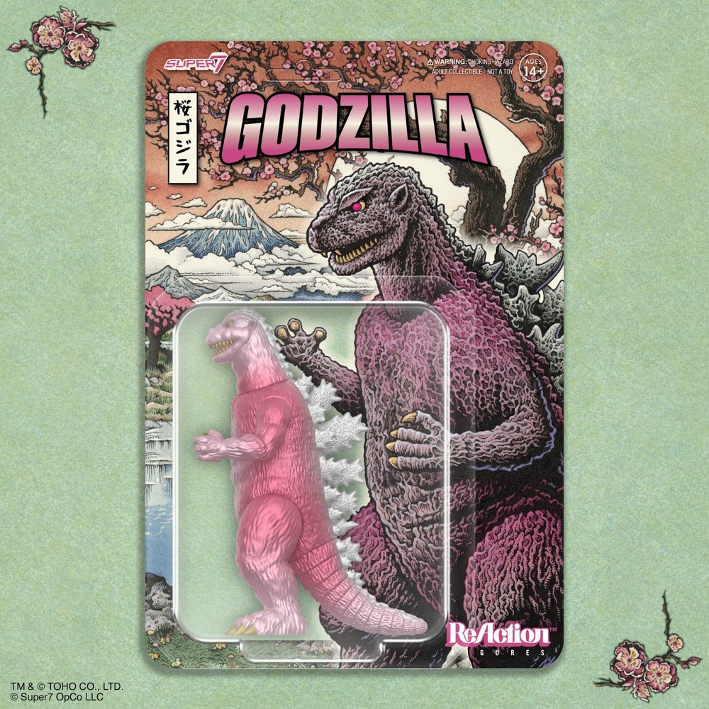 Cherry Blossom Godzilla ReAction Figure Godzilla fans, get ready for a truly special tribute to the King of the Monsters! This 3.75” scale, articulated Godzilla ‘54 ReAction Figure is inspired by the 1954 Toho film that started it all, bringing the classic kaiju to life in a stunning cherry blossom-inspired colorway. Just like the film, this figure beautifully captures Godzilla’s raw power and iconic look, all while adding a unique twist with the metallic pinks and whites that reflect the fleeting beauty of cherry blossoms. Packaged on a beautifully illustrated, full-color blistered cardback, this is not your standard Godzilla action figure—it’s a work of art. Whether you’re a collector or a die-hard Godzilla fan, this Cherry Blossom Festival Godzilla ReAction Figure will stand out in any collection—don’t miss out on collecting yours! Inspired by the 1954 Toho film, Godzilla Figure is 3.75” action figure with six points of articulation Figure is packaged on an illustrated, full-color blistered cardback The perfect gift for any Godzilla or kaiju fan; collect the entire assortment of Toho ReAction Figures