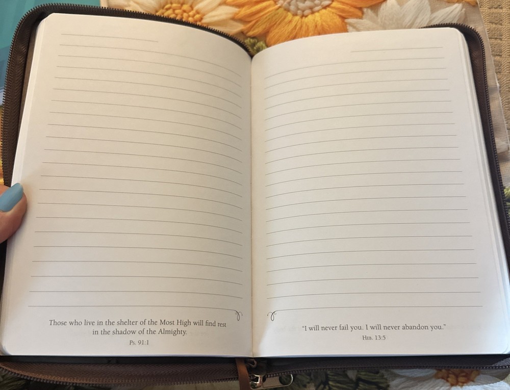 The Christian Leather Bound Journal by Christian Art Gifts is a stylish and durable notebook perfect for those looking to journal their faith and daily scripture readings. The leather cover adds a touch of sophistication, making it a great accessory for any office or personal space. With its timeless design and high-quality materials, this journal is a great choice for anyone seeking a reliable and beautiful writing instrument. New Zip shut Scripture from Jeremiah 29:11 is engraved into the decorative patch topstitched onto this rich brown Flexcover Journal. A design of Celtic influence is debossed onto the two-tone front, spine and back cover. The journal is covered in a quality man-made material with the look and feel of real leather (trade name LuxLeather), has a lay-flat spine and an attached ribbon page marker. Our writing journals are perfect for gift-giving, with a presentation page in the front. Each page carries an inspirational passage. 5.75 x 8.25 Inch - 336 Lined Pages