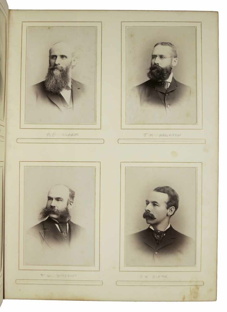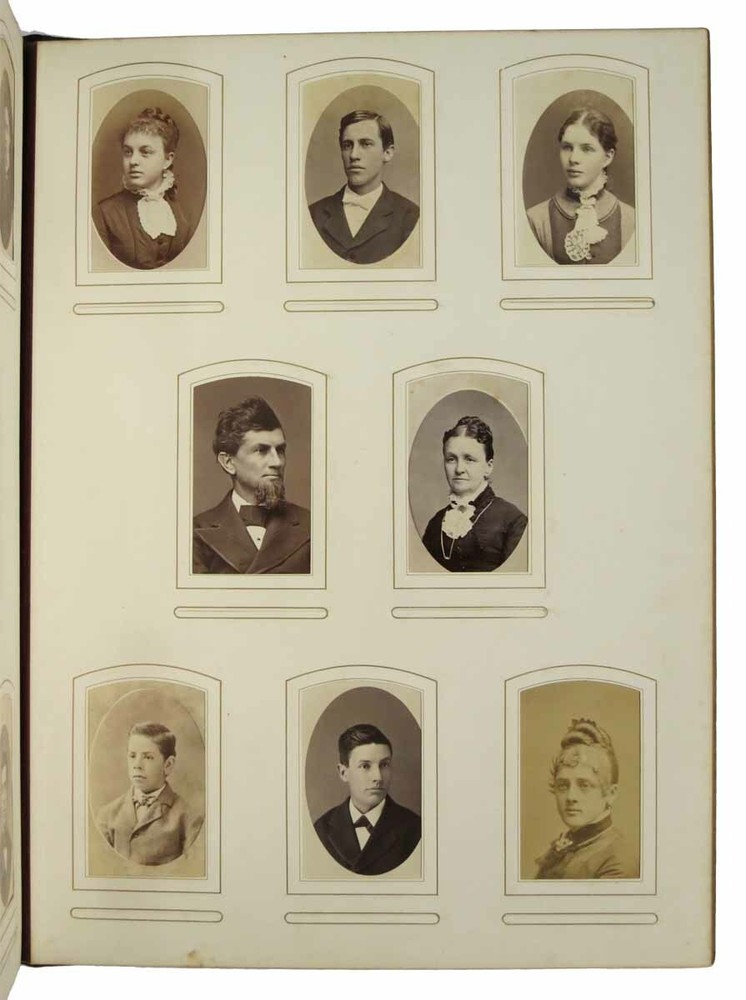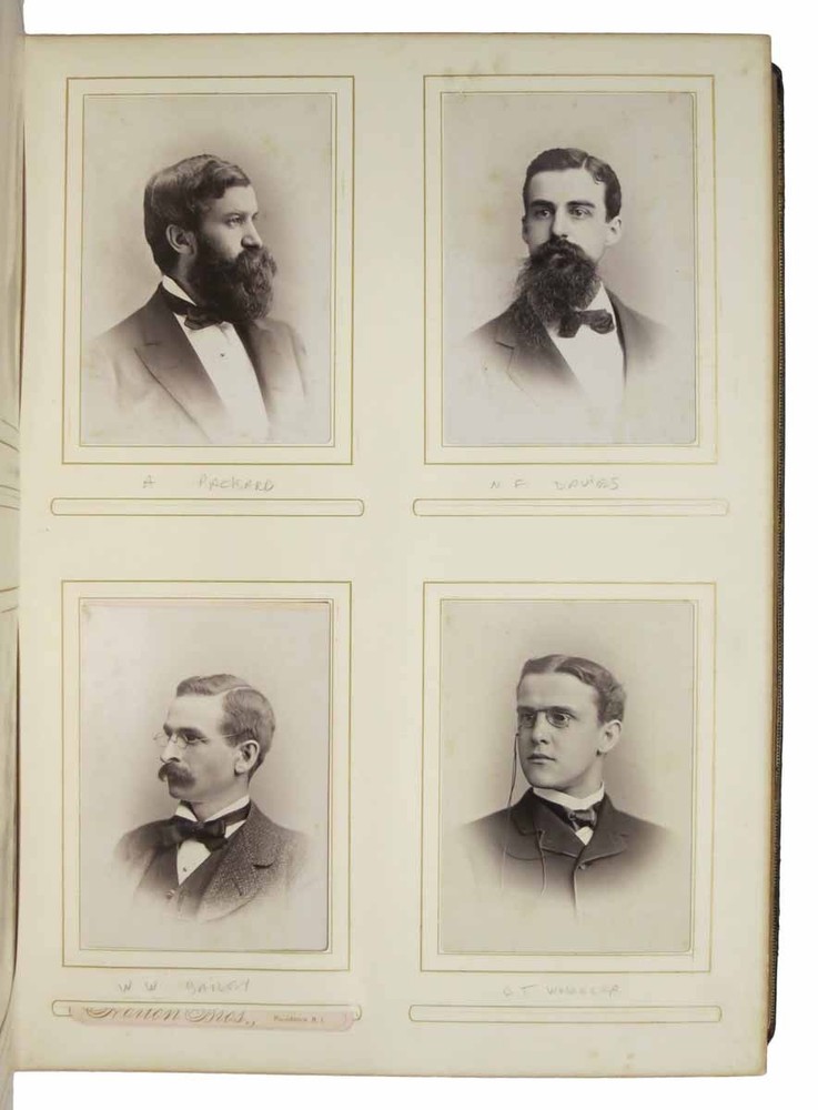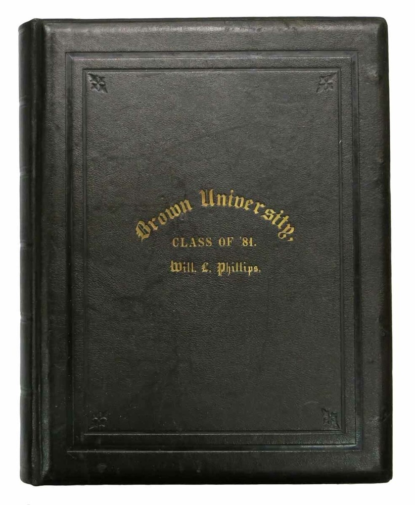 BROWN UNIVERSITY. Class of '81. [Cover title] Author: [Class Photograph Album / Yearbook]. Phillips, William Llewellyn [1857 - 1925] - Former Owner Title: BROWN UNIVERSITY. Class of '81. [Cover title] Publication: [Providence, RI]: [1881] Edition: 1st edition thus Description: 27 leaves of stiff-stock mounting board. Album contains 200+ original albumen photographs. NB. No sports team images. Folio. 16-1/2" x 12-1/2". 3/4 brown leather album with gilt stamped title lettering to front board. Bevelled edges. AEG. Marbled eps. Front board professionally reattached. A *heavy* VG+ album. A hefty class photo album of Brown University students and faculty, many of whom have been identified in pencil below their image by a prior owner. The most notable graduate that year was Charles Evans Hughes, who would later become Governor of New York, U.S. Secretary of State, and the 11th Chief Justice of the Supreme Court. William Llewellyn Phillips, the former owner of the album, was graduated with a BA in 1881, after which he became a clerk at the Providence Steam and Gas Pipe Company, and a purchasing agent at General Fire Extinguisher Company, also in Providence. Phillips was a member of Delta Upsilon fraternity. Seller ID: 42951 Subject: Americana, Photography Tavistock Books, ABAA Alameda, CA Established in 1989, Tavistock Books has been in its present Alameda location since 1997. We are a general antiquarian business, with material ranging from Aviation to Zoology, from the 16th C to the 21st. We have specialties in Dickens, History of Nursing, Children's Serial Fiction & Western Americana. Shop hours are generally Tuesday - Saturday, 10 am to 3 pm, Pacific Time, though it always helps to call prior to visiting, as we may, for example, be off buying books or exhibiting at a book fair. Guarantee We guarantee everything we sell and any item may be returned for any reason within 30 days of receipt. If the return is due to an error on our part, we will reimburse you the cost of your return. Please do exercise the same care in packaging, as we do in shipping all items purchased from us. We are members of the Antiquarian Booksellers' Association of America (ABAA), and the International Online Booksellers Association (IOBA). Shipping We are happy to ship to buyers outside of the United States. Please contact us for an exact shipping quote. All books shipped to US destinations are usually sent US Post Office Media Mail, with despatch usually within 72 hours of payment receipt. Delivery typically takes a week, but may be longer, especially during the holidays. Faster shipping is available, please contact us for a price quote. We will combine shipping on items purchased at the same time. We prefer PayPal. Feedback We leave feedback for buyers once they have posted feedback for us. If you are unhappy with any aspect of a transaction with us, please contact us immediately. We work hard to keep buyers happy and to promptly resolve the rare problem that may arise. This listing was created by Bibliopolis.
