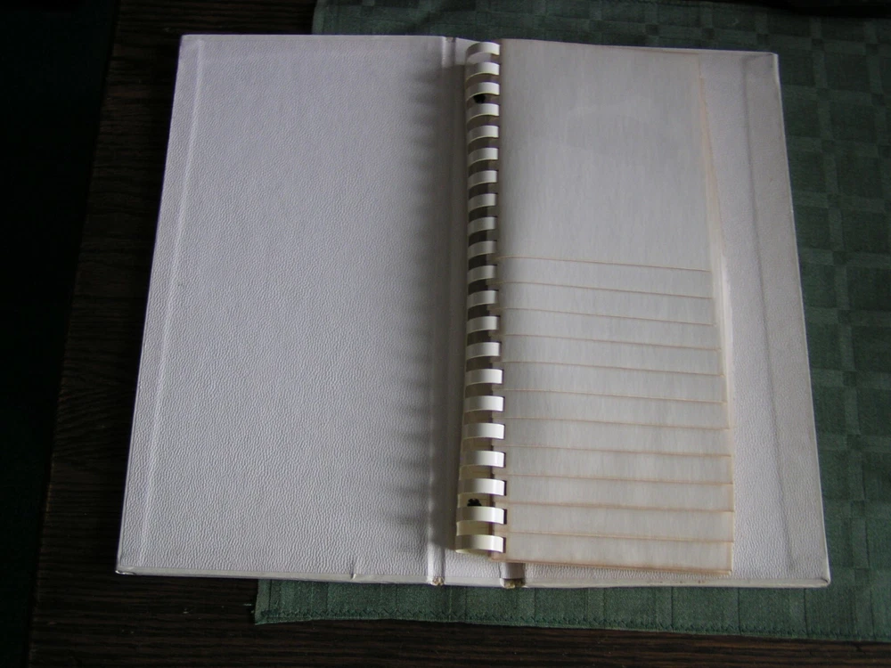 This listing is for an Off White Vintage Photo Snapshot Scrapbook Album that is 5.5"x11.5". It has 36 pockets/sleeves and will hold 72 photos that are no larger than 4"x5". The off white Album has gold trim on the front cover only. The back of the cover is plain. Photos slide in from the top of the bottom NOT the side. The spiral binding and sleeve/pockets are in excellent condition. The top and bottom corners of the spine have some scuffing. There is also some discoloration in places on the cover. See last 2 photos. This is a great little album for wedding, anniversary, baby photos or scrapbook. NOTE: This is a sturdy album. It weighs 1 lb. 4 ozs. and will be shipped in a Priority Mail Flat Rate Padded Envelope.